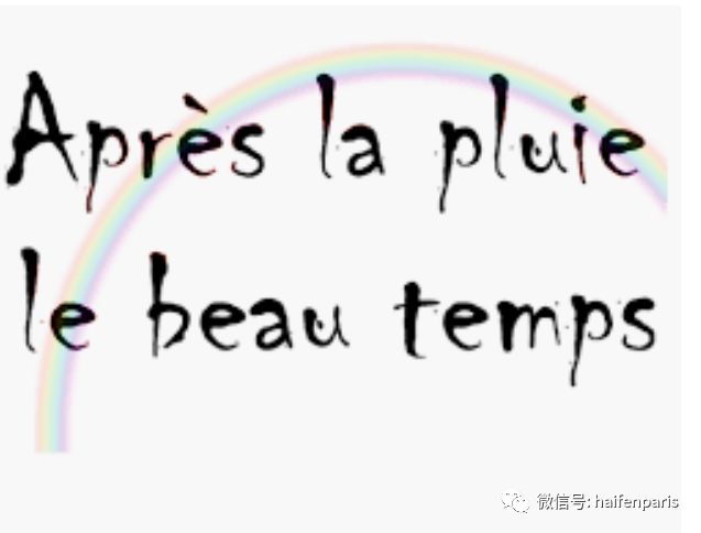 雨过天晴 Apres la pluie,le beau temps. [plɥi]n.f.1. 雨;下雨gouttes de pluie 雨点pluie fine细雨, 毛毛雨grosse pluie 雨点很大的雨une pluie courte [brève]阵雨pluie d'orage雷雨, 暴雨pluies acides酸雨pluie diluvienne暴雨 pluie torrentielle倾盆大雨pluie battante暴雨, 瓢泼大雨pluies de convection对流性雨pluies cycloniques气旋性雨pluies orographiques地形雨 la saison des pluies雨季jour de pluie 下雨天recevoir la pluie 被雨水淋湿, 淋雨recueillir les eaux de pluie dans des réservoirs用水池把雨水积储起来Le temps est à la pluie .天要下雨了。La pluie tombe à seaux [à torrents, à verse].大雨倾盆。ne pas être né [tombé] de la dernière pluie 不那么天真幼稚;富有经验ennuyeux comme la pluie 非常讨厌的Après la pluie , le beau temps.〈转义〉雨过天晴。苦尽甘来。Petite pluie abat grand vent.〈谚语〉小雨息大风。 [喻一件小事能平息狂怒]faire la pluie et le beau temps〈转义〉称王称霸, 作威作福parler de la pluie et du beau temps〈转义〉聊天, 寒暄2. en pluie 下雨般, 雨点般3. (雨点般袭来的)一阵;〈转义〉大量, 大批une pluie de coups一阵拳打脚踢avancer sous une pluie de projectiles在弹雨中前进une pluie d'or大量的钱常见用法une pluie de cadeaux大量的礼物une pluie de coups一阵拳打脚踢une pluie d'injures一顿臭骂pluie abondante大量的降雨une pluie battante一场倾盆大雨sortir malgré la pluie尽管下雨还是出去la pluie redouble雨势愈发猛烈了des pluies torrentielles倾盆大雨la pluie dégouline sur son cou雨水顺着他的脖子流下来la pluie a endommagé les récoltes下雨使收成受到损失la pluie enfle les cours d'eau雨水使河水上涨la pluie a gâché mes vacances下雨破坏了我的假期la pluie a radouci la température雨水使气候暖和le soleil a réapparu après la pluie太阳在雨后又出来了la terre se ramollit avec la pluie雨水使土地变软nous avons été surpris par la pluie我们遭到了一场大雨la pluie transperce mon imperméable雨水渗透了我的雨衣son manteau la préservait mal de la pluie她的大衣难以保护她不受雨淋。