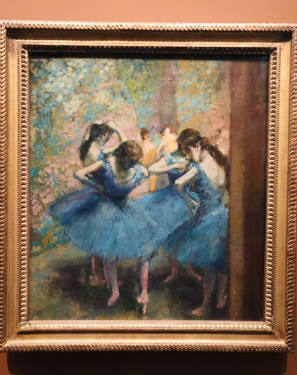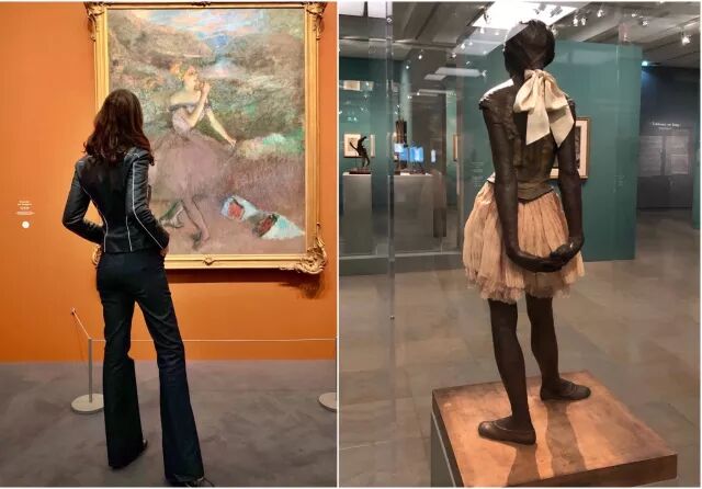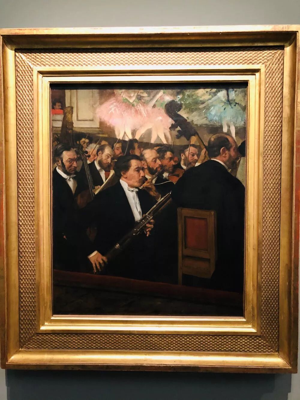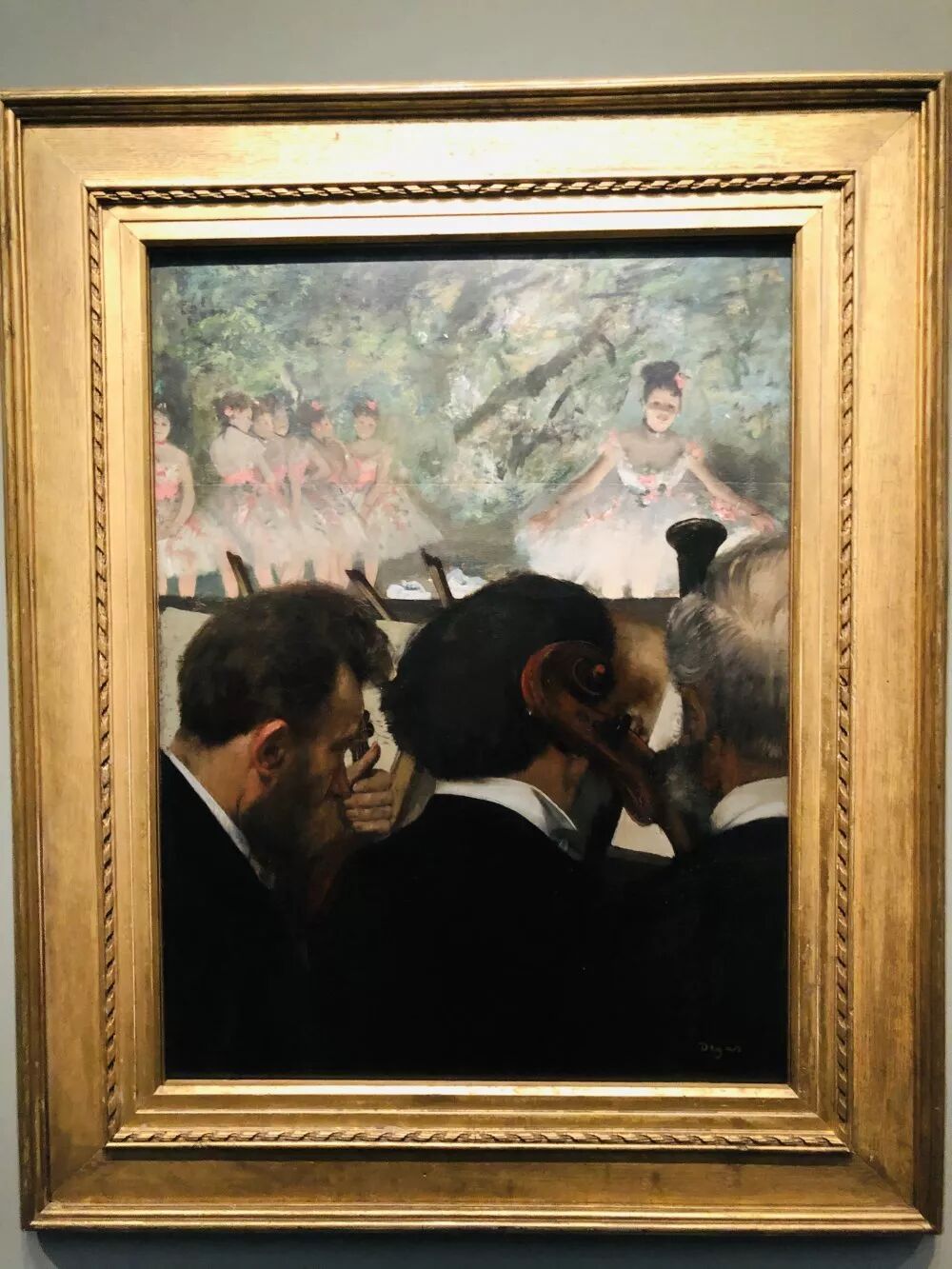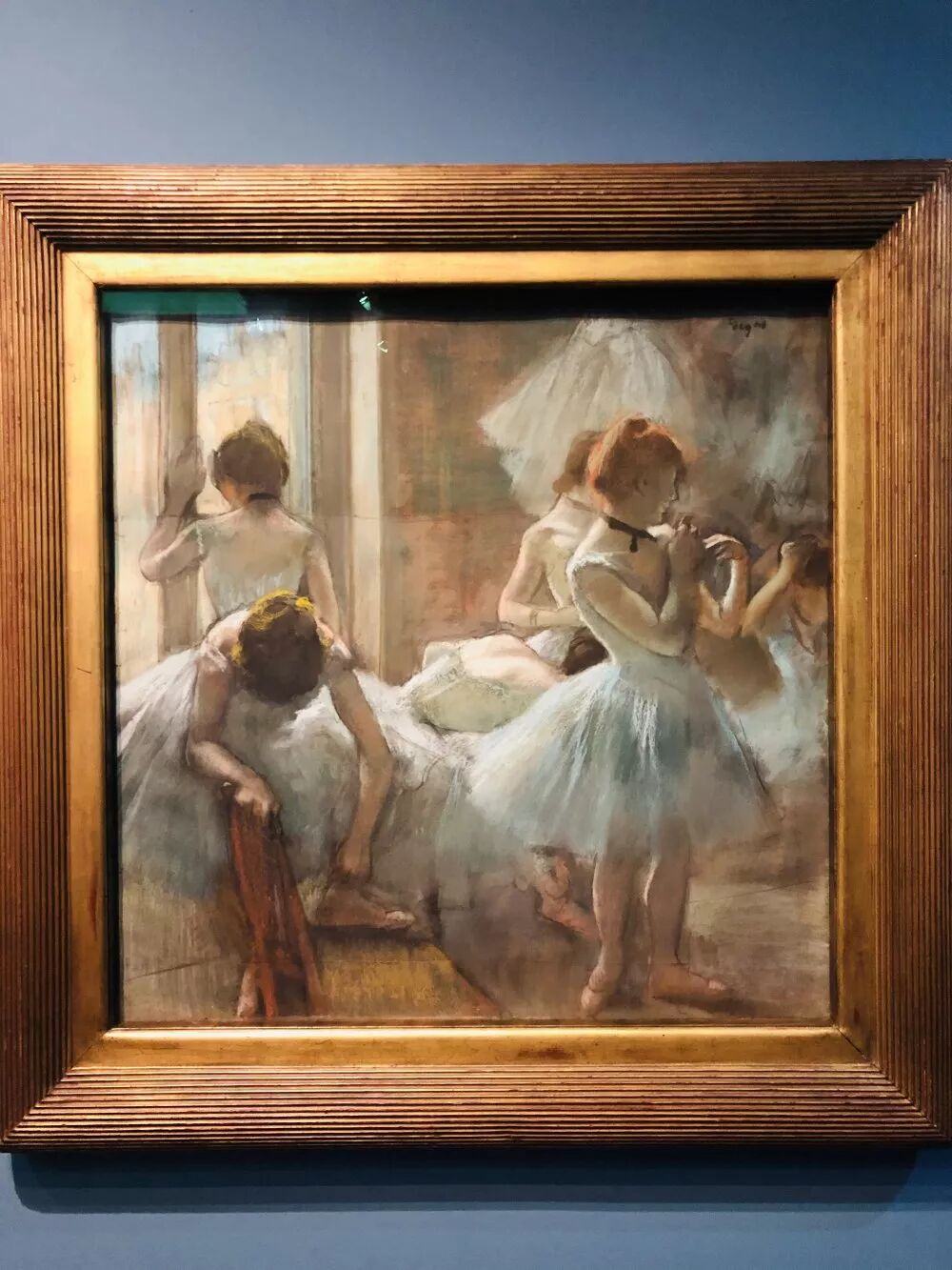 繁华世界的独行侠 德加 ▲ 奥赛博物馆德加特展官方海报 编者按: 《法国侨报》、《华人头条 法国》、微博、法国侨网等今天开始联手推出:巴黎糊糊馆长专栏(一)知道“歌剧院跳芭蕾舞的小萝莉爆款招牌”画家德加吗?繁华世界的独行侠…… 作者: 研究生和博士都是影像艺术专业(研究生是在欧洲高等影像学院,博士是普瓦提埃大学人文学院。)现在在卢浮宫学院进修艺术史,和博物馆管理课程。 巴黎奥赛博物馆与华盛顿国家美术馆联手展出德加歌剧院系列作品,展到本月十九号,所剩时日无多,然后各回各处,撂到仓库,不知猴年马月还能聚在一起亮相。 如心累眼涩脑热,不防前去看看,赏心悦目醒脑。如档期排满,要事缠身,分身乏术,还有本篇小文让你刷屏充饥,望屏止渴。 ▲ 奥赛博物馆德加展厅内景 说来惭愧,与时俱退,不蹭热度。磨时间,熬长文,诸位看官要“长图跋涉”咯! 我是去年秋分冲进去看,拖到现在才下笔。本想给眼睛一份厚礼,瞧瞧德加的芭蕾舞小萝莉,就此了了。结果一发不可收拾,把关于德加的画册书籍都搬回家来细看。 ▲ 我在巴黎古董市场上淘到的一件二十世纪初德加的芭蕾舞者翻铸铜像《十四岁的小舞者》。原作大概创作于1880年前后,在第八次印象派大展中展示,德加还为她穿上了纱裙,系上了丝带蝴蝶结,成为艺术史上第一件复合媒材雕塑作品。 不疯魔 不成活 徳加活得久,画也多,遍布世界。最为人熟知的就是这些歌剧院跳芭蕾舞的小萝莉,成为他的爆款招牌画。绘画史上少有一位画家契而不舍、痴狂追着一群少女,一个题材,一画就是几十年,上千张之多,直到把这一主题发挥到淋漓尽致。江湖人送外号“萝莉控怪蜀黍”。 ↑↓上下来回摩擦 欣赏更多德加笔下不知如何是好的小萝莉。这批歌剧院系列作品创作时间跨度很大,从1860年到1900年都有。 在我看来,德加的人物刻画柔若有骨,自然,自如,自在。无关颜值,更着意于轮廓姿态和身体的律动。快笔涂抹,无论是记忆中想到的线还是现实中看到的线。在韵律,速度,动静的掌握上气息酣畅。他擅画台前幕后这些熟视无睹,无人在乎的日常琐碎瞬间。 德加每日打卡巴黎歌剧院的排练现场,上班似的,和芭蕾舞演员们朝夕相处,建立了一种默契和信任,没有郑重其事,扭捏作态,反而真实动人。 舞者流露画面的是不经意的动作,伸懒腰,挠痒,抠脚,压腿,揉搓身体,整理衣裙,系鞋带……没有人在乎他在画画。德加的窥视是现场的,即兴的,片段的,破碎的,动态的,印象的,非叙述性的。 ↑↓上下来回摩擦,德加的视角始终在舞者和乐手身上,他不表现观众,这和其他印象派画家不同。雷诺阿,卡萨特会把焦点放在衣着光鲜亮丽的观众身上。 德加所处的时代摄影术已经流行,这种新的视觉经验,无论是在构图,景深,光影,还是瞬间动态捕捉上,都扩展了他的创作边界。如果前人的画是搔首弄姿的刻意摆拍,那德加的画就是决定性瞬间抓拍。 德加后期因为眼疾,开始大量使用粉彩,一方面是可以用更强,更粗的线条造成近似素描的效果。 另一方面是这种色粉笔携带方便,可以自由快速的现场作画,色彩更绚丽,蝶翼纷飞,鲜艳明亮,但不易保存。所以展览的作品都悉心表框,调暗光线,降低损害。 ↑↓上下来回摩擦 德加粉彩芭蕾舞者作品。 德加美学最耐人寻味的在于他关心人,远超关心艺术。他希望剥开艺术的表面粉饰,表现更真实的人的内在心理活动。 这次展览只是德加艺术的局部,其实德加的视野远非如此,他画众生群相,遗老贵族,新富土豪,贩夫走卒,饮食男女,都入眼入画,犹如绘画圈的莫泊桑。一个码字,一个画画,留下十九世纪巴黎社会的切片缩影,历史镜像。 追忆似水年华 ▲《德加自画像》,约1863年创作,葡萄牙古尔本基安美术馆藏。 德加(1834-1917)是法国古贵族子弟,世代传承,看原名便知:Edgar Hilaire Germain de Gas,世袭贵族头衔是De Gas, 可他不想戴这顶“帽子”,干脆合二为一,改名为Degas,告别荣耀封号,面对自我,脱胎换骨,重获新生,融入平民时代。 德加在早期作品中寻根溯源,从家族成员肖像陆续展开,追忆似水年华。 ▲《祖父像》画于1857年,巴黎奥赛博物馆藏,53×41cm 这老头一看就是个老谋深算,高傲固执,精致讲究的遗老贵族,教养派头都还在。优雅的倚靠在沙发上,手拿权杖,衣履光鲜,黑白分明,但已暮年暗然,在夕阳余晖下,孤独而凄凉。 德加的祖父在十八世纪遇上法国大革命,逃亡意大利,躲过断头台。此后,通过贵族联姻,甚至近亲繁殖,维持家族荣耀。 到十九世纪,整个欧洲经历传统权贵大洗牌,要么家底丰厚,还能硬撑;要么走向衰落或极力转型,迈向新大陆。 工业革命后,新兴资产阶级陆续登场,德加的父亲迎娶了来自美国的土豪千金,用新钱维持了一个老贵族残存的体面,成功转型为商业金融大亨。 ▲《父亲聆听吉他》约1871-1872,巴黎奥赛博物馆藏,54.5×40cm 这是一次家宴后的音乐会,画中颓废微醺的老绅士就是德加的父亲,风光不在,沧桑满面,孤独落寞的缩坐角落,若有所思,发呆出神,已经没了祖辈的贵族派头,和古典钢琴一起退为背景,让位于流行吉他手。 ▲《贝列里家族》1858-1869年间完成,巴黎奥赛博物馆藏,200×250cm