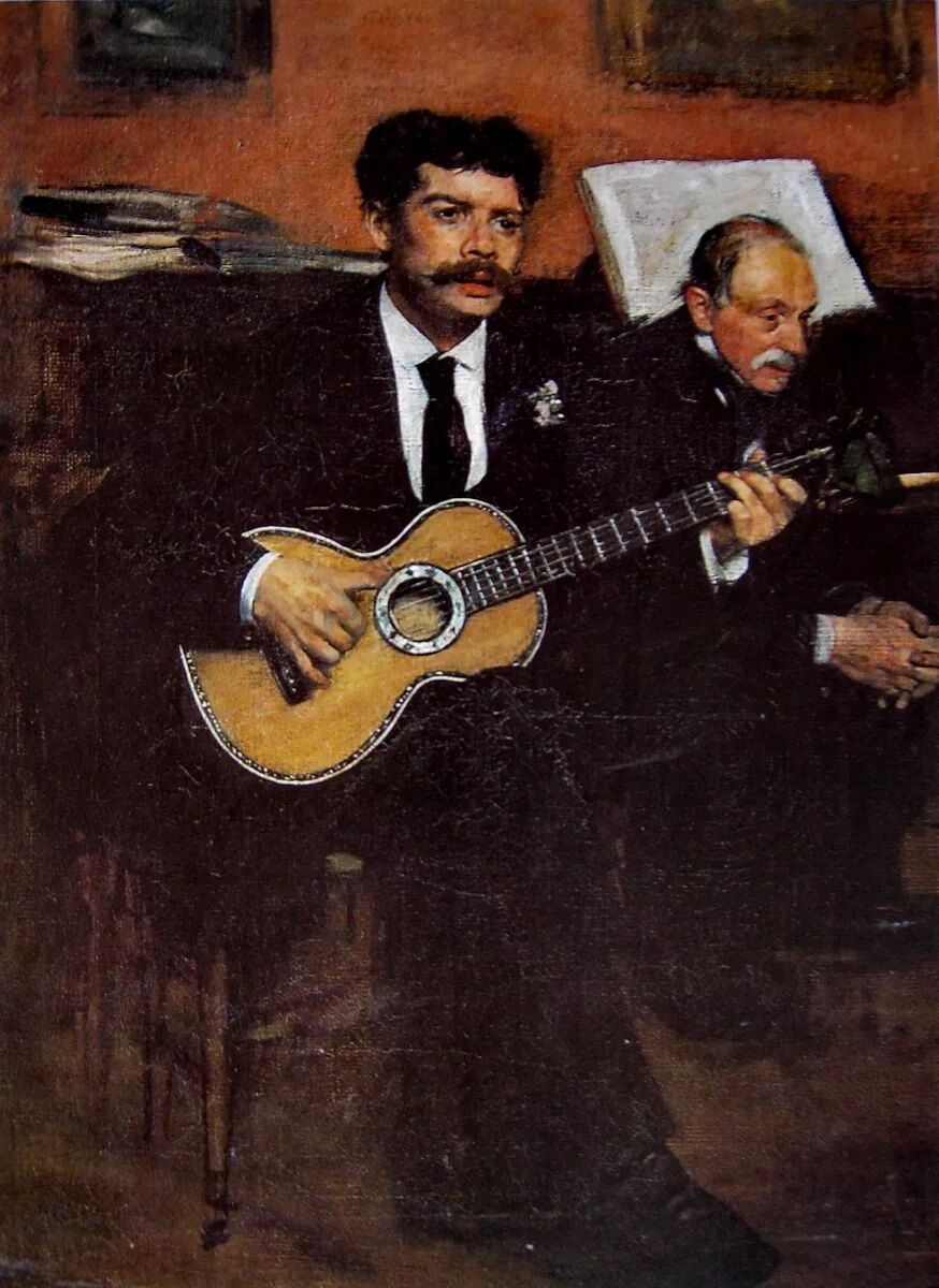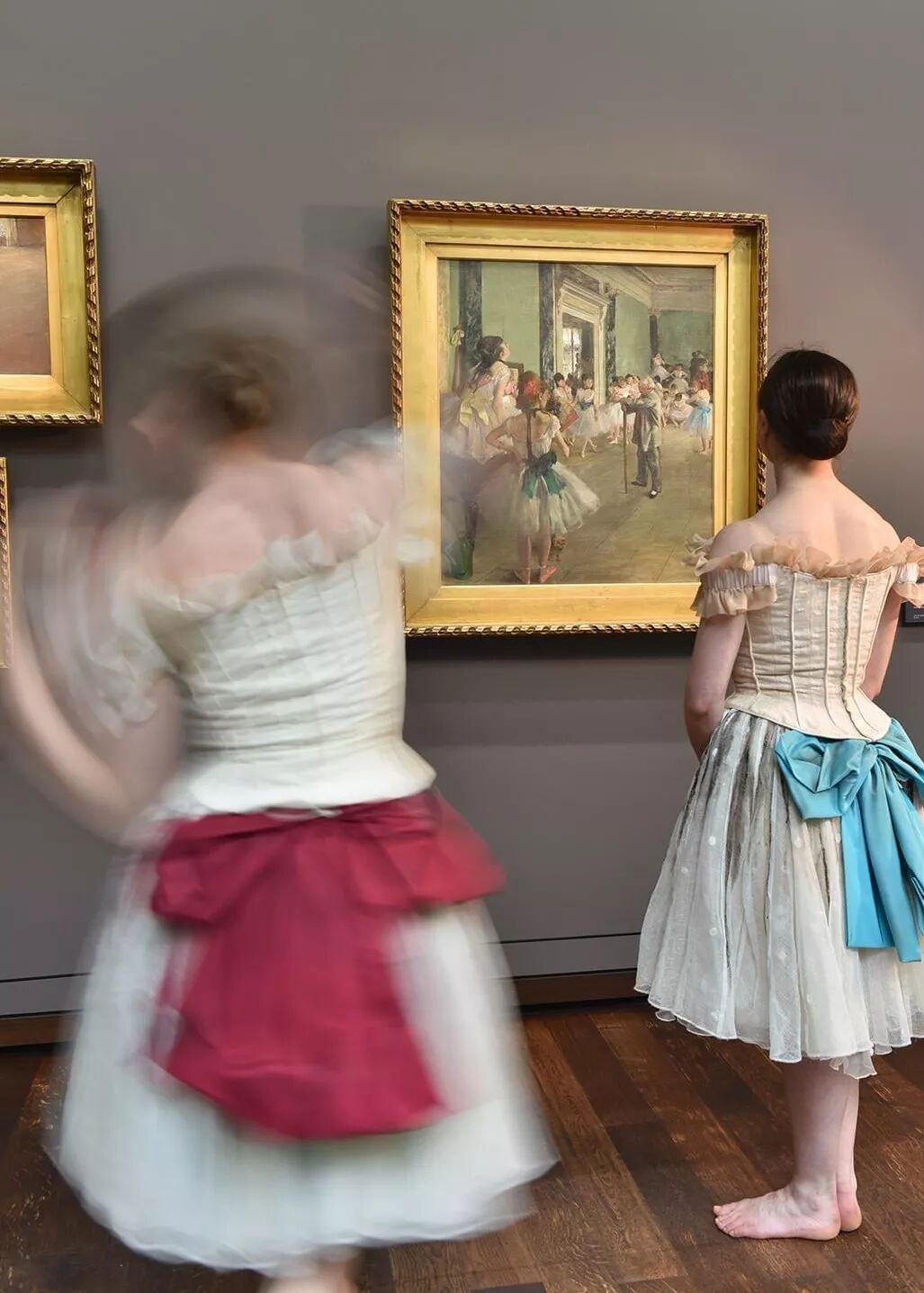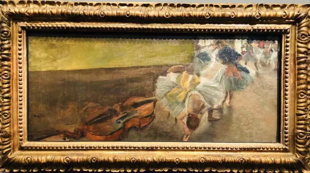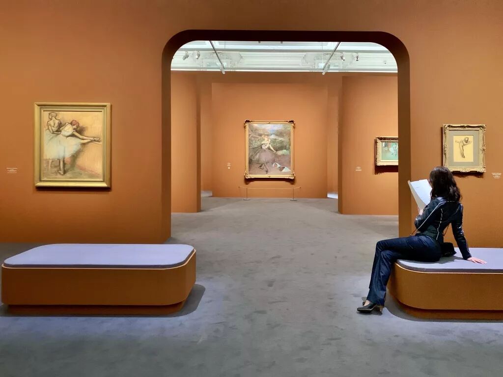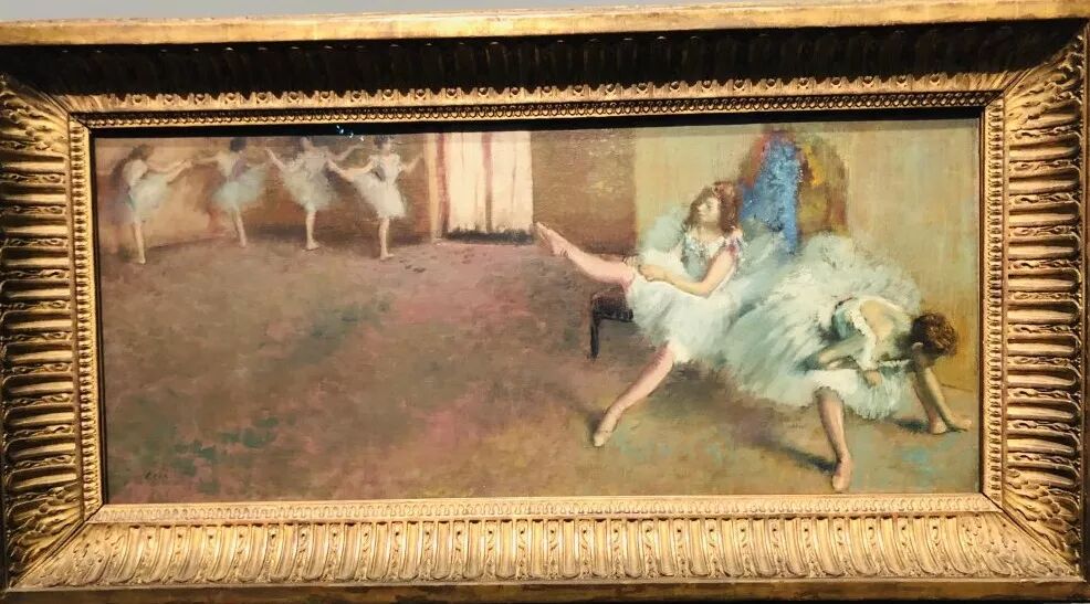 繁华世界的独行侠 德加 ▲ 奥赛博物馆德加特展官方海报 编者按: 《法国侨报》、《华人头条 法国》、微博、法国侨网等今天开始联手推出:巴黎糊糊馆长专栏(一)知道“歌剧院跳芭蕾舞的小萝莉爆款招牌”画家德加吗?繁华世界的独行侠…… 作者: 研究生和博士都是影像艺术专业(研究生是在欧洲高等影像学院,博士是普瓦提埃大学人文学院。)现在在卢浮宫学院进修艺术史,和博物馆管理课程。 巴黎奥赛博物馆与华盛顿国家美术馆联手展出德加歌剧院系列作品,展到本月十九号,所剩时日无多,然后各回各处,撂到仓库,不知猴年马月还能聚在一起亮相。 如心累眼涩脑热,不防前去看看,赏心悦目醒脑。如档期排满,要事缠身,分身乏术,还有本篇小文让你刷屏充饥,望屏止渴。 ▲ 奥赛博物馆德加展厅内景 说来惭愧,与时俱退,不蹭热度。磨时间,熬长文,诸位看官要“长图跋涉”咯! 我是去年秋分冲进去看,拖到现在才下笔。本想给眼睛一份厚礼,瞧瞧德加的芭蕾舞小萝莉,就此了了。结果一发不可收拾,把关于德加的画册书籍都搬回家来细看。 ▲ 我在巴黎古董市场上淘到的一件二十世纪初德加的芭蕾舞者翻铸铜像《十四岁的小舞者》。原作大概创作于1880年前后,在第八次印象派大展中展示,德加还为她穿上了纱裙,系上了丝带蝴蝶结,成为艺术史上第一件复合媒材雕塑作品。 不疯魔 不成活 徳加活得久,画也多,遍布世界。最为人熟知的就是这些歌剧院跳芭蕾舞的小萝莉,成为他的爆款招牌画。绘画史上少有一位画家契而不舍、痴狂追着一群少女,一个题材,一画就是几十年,上千张之多,直到把这一主题发挥到淋漓尽致。江湖人送外号“萝莉控怪蜀黍”。 ↑↓上下来回摩擦 欣赏更多德加笔下不知如何是好的小萝莉。这批歌剧院系列作品创作时间跨度很大,从1860年到1900年都有。 在我看来,德加的人物刻画柔若有骨,自然,自如,自在。无关颜值,更着意于轮廓姿态和身体的律动。快笔涂抹,无论是记忆中想到的线还是现实中看到的线。在韵律,速度,动静的掌握上气息酣畅。他擅画台前幕后这些熟视无睹,无人在乎的日常琐碎瞬间。 德加每日打卡巴黎歌剧院的排练现场,上班似的,和芭蕾舞演员们朝夕相处,建立了一种默契和信任,没有郑重其事,扭捏作态,反而真实动人。 舞者流露画面的是不经意的动作,伸懒腰,挠痒,抠脚,压腿,揉搓身体,整理衣裙,系鞋带……没有人在乎他在画画。德加的窥视是现场的,即兴的,片段的,破碎的,动态的,印象的,非叙述性的。 ↑↓上下来回摩擦,德加的视角始终在舞者和乐手身上,他不表现观众,这和其他印象派画家不同。雷诺阿,卡萨特会把焦点放在衣着光鲜亮丽的观众身上。 德加所处的时代摄影术已经流行,这种新的视觉经验,无论是在构图,景深,光影,还是瞬间动态捕捉上,都扩展了他的创作边界。如果前人的画是搔首弄姿的刻意摆拍,那德加的画就是决定性瞬间抓拍。 德加后期因为眼疾,开始大量使用粉彩,一方面是可以用更强,更粗的线条造成近似素描的效果。 另一方面是这种色粉笔携带方便,可以自由快速的现场作画,色彩更绚丽,蝶翼纷飞,鲜艳明亮,但不易保存。所以展览的作品都悉心表框,调暗光线,降低损害。 ↑↓上下来回摩擦 德加粉彩芭蕾舞者作品。 德加美学最耐人寻味的在于他关心人,远超关心艺术。他希望剥开艺术的表面粉饰,表现更真实的人的内在心理活动。 这次展览只是德加艺术的局部,其实德加的视野远非如此,他画众生群相,遗老贵族,新富土豪,贩夫走卒,饮食男女,都入眼入画,犹如绘画圈的莫泊桑。一个码字,一个画画,留下十九世纪巴黎社会的切片缩影,历史镜像。 追忆似水年华 ▲《德加自画像》,约1863年创作,葡萄牙古尔本基安美术馆藏。 德加(1834-1917)是法国古贵族子弟,世代传承,看原名便知:Edgar Hilaire Germain de Gas,世袭贵族头衔是De Gas, 可他不想戴这顶“帽子”,干脆合二为一,改名为Degas,告别荣耀封号,面对自我,脱胎换骨,重获新生,融入平民时代。 德加在早期作品中寻根溯源,从家族成员肖像陆续展开,追忆似水年华。 ▲《祖父像》画于1857年,巴黎奥赛博物馆藏,53×41cm 这老头一看就是个老谋深算,高傲固执,精致讲究的遗老贵族,教养派头都还在。优雅的倚靠在沙发上,手拿权杖,衣履光鲜,黑白分明,但已暮年暗然,在夕阳余晖下,孤独而凄凉。 德加的祖父在十八世纪遇上法国大革命,逃亡意大利,躲过断头台。此后,通过贵族联姻,甚至近亲繁殖,维持家族荣耀。 到十九世纪,整个欧洲经历传统权贵大洗牌,要么家底丰厚,还能硬撑;要么走向衰落或极力转型,迈向新大陆。 工业革命后,新兴资产阶级陆续登场,德加的父亲迎娶了来自美国的土豪千金,用新钱维持了一个老贵族残存的体面,成功转型为商业金融大亨。 ▲《父亲聆听吉他》约1871-1872,巴黎奥赛博物馆藏,54.5×40cm 这是一次家宴后的音乐会,画中颓废微醺的老绅士就是德加的父亲,风光不在,沧桑满面,孤独落寞的缩坐角落,若有所思,发呆出神,已经没了祖辈的贵族派头,和古典钢琴一起退为背景,让位于流行吉他手。 ▲《贝列里家族》1858-1869年间完成,巴黎奥赛博物馆藏,200×250cm