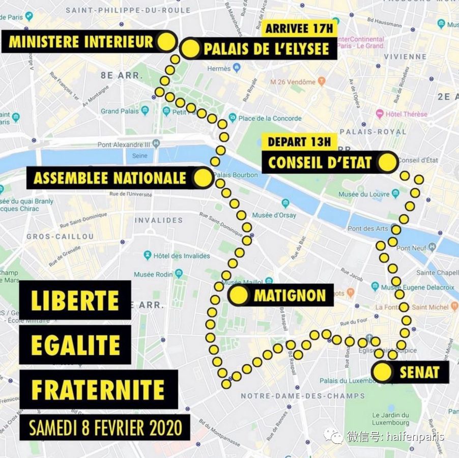 《法国侨报》讯:(实习记者 小瓦)法国黄背心报道65集!本周六2月8日,这次瞄准了爱丽舍宫(l’Elysée)! 来自法国媒体的消息说:2月8日周六,黄背心将于下午1点在Conseil d’Etat前聚集,预计在4小时后到达爱丽舍宫。 这周六,一些黄背心计划不顾巴黎警察总部的禁令,将在一些立法和行政权力的场所前举行示威,甚至要去马克龙总统(Emmanuel Macron)的官邸前! 据说,游行队伍将依次经过参议院(Sénat)、总理府(Matignon)、国会大厦(l’Assemblée Nationale)和内政部(Ministère de l’Intérieur ),最后在总统府(Palais Présidentiel )结束。 让人记忆犹新的是,一年多以前,法兰西岛大区通过法令,禁止在以上提及的这些地区,以及Trocadéro、Champ-de-Mars、Notre-Dame、Les Halles和Saint-Lazare街区举行任何黄背心的集会。 明天周六,务请大家出行注意安全! 以下是游行路线: 法语版: Un certain nombre de manifestants sont déterminés à défiler ce samedi après-midi du Conseil d’Etat jusqu’à l’Elysée, en passant par Matignon. Peu importe l’interdiction préfectorale. Le rendez-vous est donné à 13 heures devant le Conseil d'Etat. Pour une arrivée prévue quatre heures plus tard devant le palais de l'Elysée. Ce samedi, une partie des Gilets jaunes ont prévu d'outrepasser les interdictions de la préfecture de police de Paris et de manifester devant les lieux du pouvoir législatif et exécutif, pour un final devant la demeure d'Emmanuel Macron. Une provocation totalement assumée visant à « défendre le droit de manifester librement et pacifiquement », nous explique un militant. En résumé : le cortège souhaite longer le Sénat (VIe), Matignon (VIIe) et l'Assemblée nationale (VIIe) avant de terminer dans le VIII e arrondissement par le ministère de l'Intérieur et le palais présidentiel. Seulement, comme depuis plus d'un an, la préfecture a interdit par arrêté tout rassemblement « se revendiquant des Gilets jaunes » dans ces secteurs, ainsi qu'au Trocadéro, au Champ-de-Mars, à Notre-Dame, aux Halles et dans le quartier Saint-Lazare. C'était encore le cas ce jeudi lors de la nouvelle journée de mobilisation contre la réforme des retraites. 推广 |