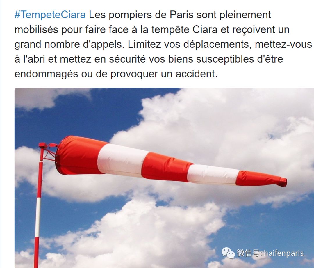 《法国侨报》讯:(记者小玉)今晚,法国尤其是巴黎的朋友们是不是感觉到突然风大突然很冷了? 来自法国气象部门的最新消息: 星期天,风暴席亚拉(Stora Ciara)席卷整个北欧,包括法国。 铁塔关闭! 航班取消! 足球赛推迟! 巴黎人尽量不要出行! 法国气象部门消息说: 预计暴风将在本周日(2月9日)晚间至周一凌晨(2月10日)到达峰值,从周一(2月9日)晚上开始转移并将持续影响至周四(2月13日)。 目前,法国北部地区以及科西嘉岛已经处于橙色预警状态。居民被要求避开森林,海岸线和限制出海。 今天,铁塔已经关闭。 巴黎消防员在推特帐户上呼吁巴黎人限其出行,保护所有可能损坏或造成事故的物品。 还有,席亚拉风暴席卷西北欧和法国北部,英国乃至荷兰、比利时等。航班取消,足球比赛推迟。法国北部地区会有洪水和停电发生。 关于席亚拉风暴,您需要了解的内容还有: 除TGV外,晚上8点,在法国风暴强烈地区的火车交通将完全中断,英吉利海峡的轮渡已中断。 根据法兰西气象局新闻MeteoNews网站的数据显示:艾菲尔铁塔附近阵风超过每小时120公里。 根据法国气象局的预测,巴黎的风速可能达到95公里/小时。但是在伊夫林省南部和塞纳河-马恩省北部时速为115公里/小时。 大风现象可能持续数天。 狂风之下,会有树木等倒下。 在法国北部的瓦兹省(Oise),已经有好几处地方发生了狂风拔起树木的情况。 请大家务必注意今天到明天的天气预报! 近期必须注意的报道: 法国暂关两所学校 强烈呼吁华侨刚回法国务请自我隔离两周(新冠病毒连续报道26) 直播回看 中国驻法大使卢沙野中外记者会上“高度赞成旅法侨界自觉行动共同应对疫情!他们所采取的很多防护措施都是非常正确的!” 中国驻马里朱立英大使再次撰文:面对新型冠状病毒,是否有必要恐慌? 巴黎2020口罩群实录:法国货到了中国朋友不要了;中国朋友付钱了法国朋友还没邮寄……(抗肺炎报道19篇) 推广 一场病毒, 人们发现最大的竞争力是: 提高免疫力! |