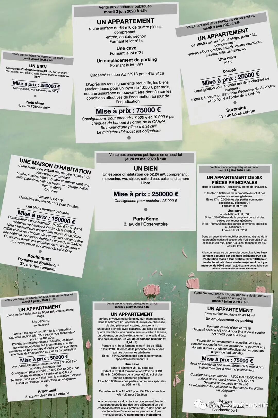 《法国侨报》讯:(巴黎房姐)大小巴黎6-7月法院房产拍卖! 有意者请联系我们: 有意者请联系: