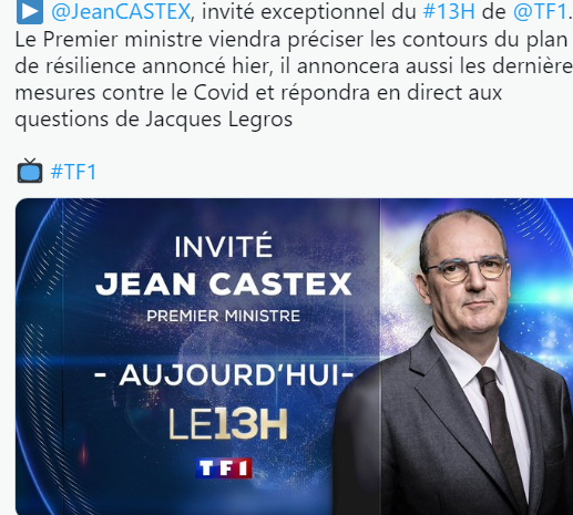 具体分布为: 法兰西岛:4707 (-87)人住院,496 (-17)人在重症监护室,24小时内+18人死亡 大东部地区:1909 (-41)人住院,191 (-12)人在重症监护室,24小时内+12人死亡 上法兰西:2051 (-29)人住院,198 (-4)人在重症监护室,24小时内+8人死亡 奥弗涅-罗纳-阿尔卑斯:2659 (-116)人住院,238 (-8)人在重症监护室,24小时内+24人死亡 普罗旺斯-阿尔卑斯-蓝色海岸:2425 (-83)人住院,263 (-14)人在重症监护室,24小时内+22人死亡 布列塔尼:977 (-17)人住院,66 (+1)人在重症监护室,24小时内+10人死亡 诺曼底:1300 (-47)人住院,97 (-7)人在重症监护室,24小时内+10人死亡 新阿基坦州:1753 (-56)人住院,148 (-6)人在重症监护室,24小时内+16人死亡 卢瓦尔河区:689 (-65)人住院,67 (-9)人在重症监护室,24小时内+9人死亡 奥克西坦尼:2037 (-59)人住院,206 (-8)人在重症监护室,24小时内+16人死亡 卢瓦尔河中心区:834 (-32)人住院,72 (-4)人在重症监护室,24小时内+6人死亡 勃艮第-弗朗什-孔泰省:970 (-34)人住院,78 (-9)人在重症监护室,24小时内+15人死亡 今天,法国总理卡斯泰(Jean Castex)官宣: 第一:室内将不再强制佩戴口罩((商店、影院、剧场、餐厅、公司等,但是公共交通除外); 取消疫苗通行证(但医院、疗养院医护人员除外)。