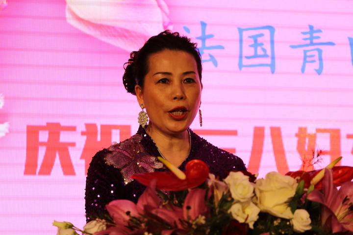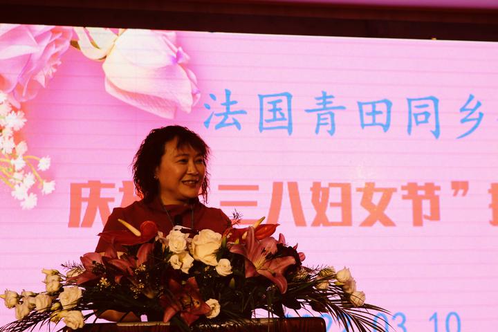 法国青田同乡会副妇女主任陈丽青首先上台,向当晚所有到场的姐妹们、嘉宾们祝福节日快乐!
