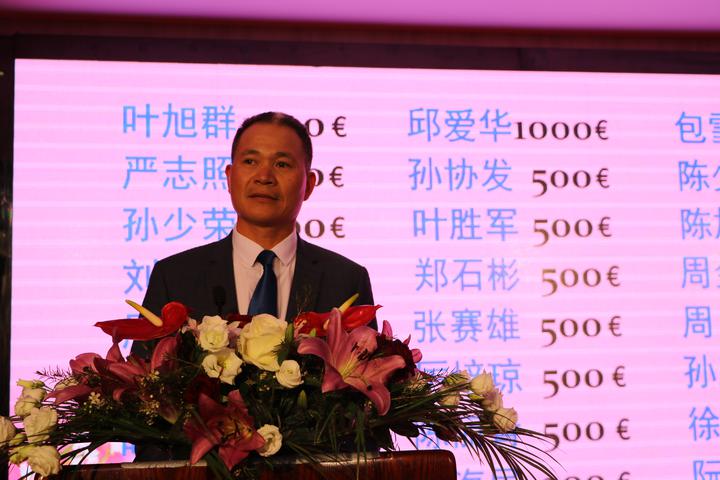 他首先向大家致以节日的祝福!他说:“法国青田同乡会自成立以来,在历届会长的带领下,已经发展成旅法侨界重要的侨团之一。多年来,贵会始终坚持创会宗旨,积极参与侨界各项活动,在促进侨胞融入法国社会、弘扬中华文化等方面发挥了积极作用,为侨界的团结和谐做出了榜样。法国新冠期间,贵会第一批收到青田县寄来的中药,会长慷慨地分发给各个侨团,顾全大局的做法得到各位会长的高度赞扬。叶会长也带领会员们在保障自身健康安全的同时,为乡亲们送药到家,是新冠期间最美的逆行者。希望在叶会长的带领下,继续精诚团结,不断进取,相信法国青田同乡会一定会百尺竿头,再创辉煌,更好地服务旅法侨胞,为促进中法两国人民交流做出更大的贡献!” 接着,法国青田同乡会郑石彬秘书长宣读了本次活动礼品的捐款人名单,为大家抽奖助兴……