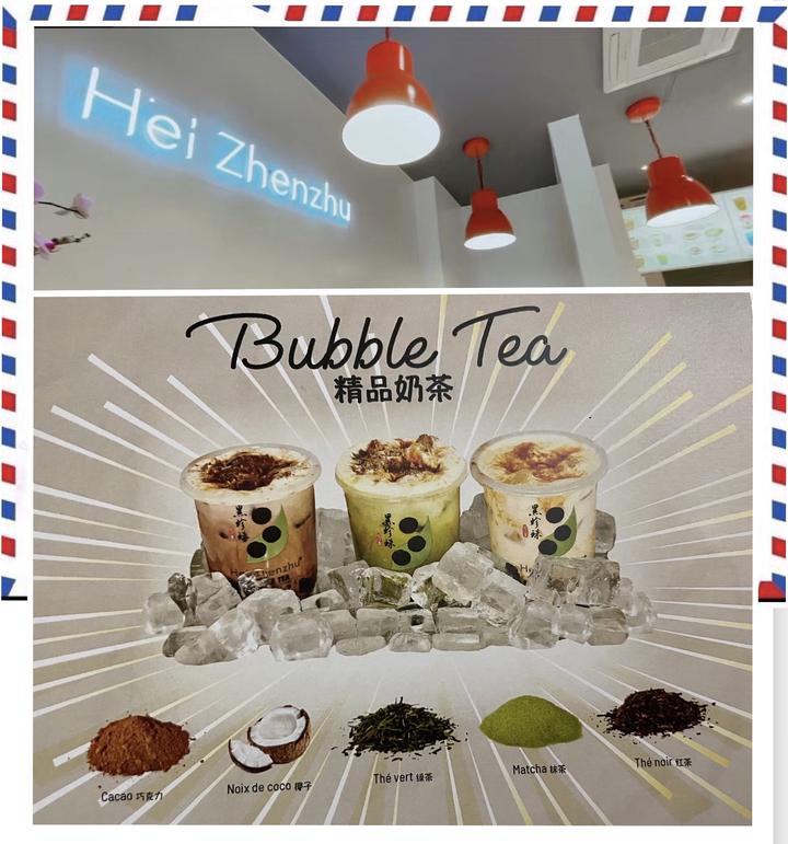 后来,知道巴黎2区有一家珍珠奶茶馆ZEN ZOO ,每周都会不远几里赶去喝上一杯……再后来,美丽城有了奶茶店,那就方便多了…… 让我震惊不已的是,我去英国剑桥大学看孩子,居然也看到了名字叫“CHATIME”的珍珠奶茶馆!(当然马上停下来,喝一杯啦……) 珍珠奶茶登陆欧洲大约有十多年了。 新冠以来,法国居然一下子火爆,年轻人、中国人、法国人……珍珠奶茶居然成了巴黎,不,全法国时尚年轻人的标配! 据统计,一年时间,仅在法国注册经营的奶茶店(BUBBLE TEA)已经超过了2200多家!店主几乎都是清一色的年轻人。 昨天中午,92,avenue de saint ouen 75018一家名字叫“黑珍珠”的奶茶馆悄然开张。