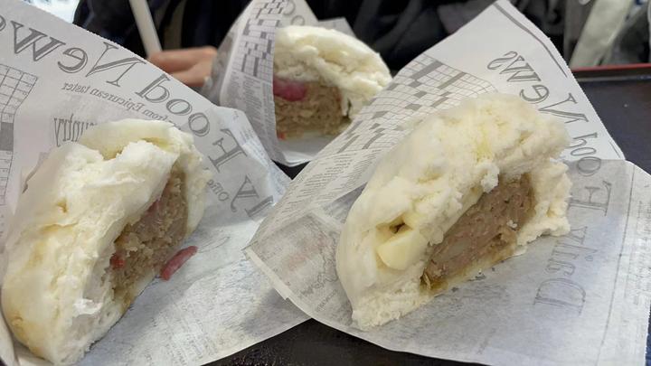 这时,女金主拿来了一个包子! 哇塞,珍珠奶茶+包子=吃好又吃饱!