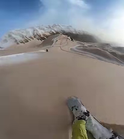 要不是有滑雪好手以身试法,远看只怕谁都会以为那是一片沙漠。