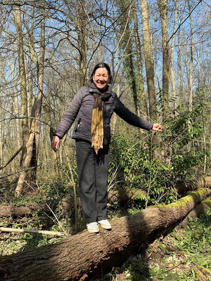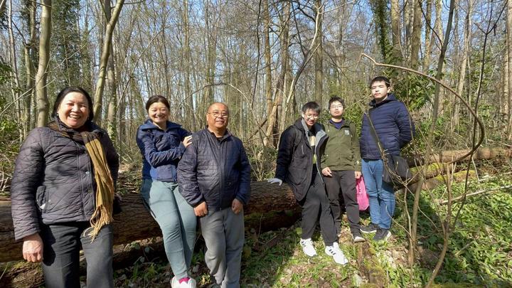 很欣慰的是留学生Y本来睡懒觉不想去了,但是后来居然又一个人乘B线赶来和我们汇合了! 这中间让我很感动的是:Y过来我们欢迎,但我担心森林里的路不容易找……和我们一起出发的留学生K和Z两人听说Y要赶过来,马上说:“我们会给他定位。真的找不到,我们会去车站接他!” 互助,温暖,有爱……这样的留学生,真的了不起! 留学生们到巴黎来几年,都是第一次到森林里来。 兰英姐这是第二次来森林里。 一路上,兰英姐特别高兴,因为今天是春分,同时兰英姐看到一个视频,说每周到森林里两小时,可以自然增加很多“NK细胞”。说体内NK细胞多了,身体就好,免疫力就会高……