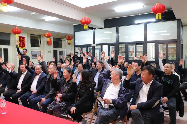 今天,与会主席团成员以举手表决方式,一致鼓掌通过创新的旅法侨界“候任会长时代模式”: 任俐敏宣布,法国华侨华人会第23届主席团解散! 蔡君柱正式当选第24届主席,郑金标同时当选第24届候任主席、第25届主席!