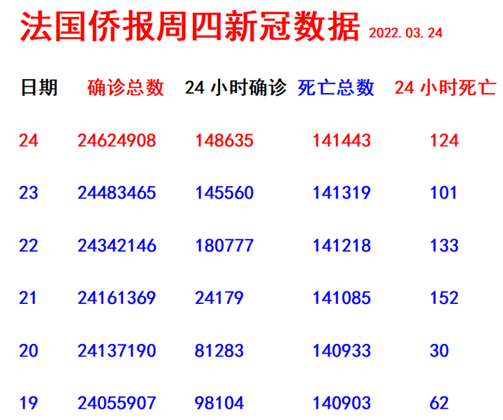 (来源: https://www.sortiraparis.com/actualites/coronavirus/articles/216011-coronavirus-en-france-ce-jeudi-24-mars-2022-124-morts-du-covid-et-148-635-nouveaux-cas) 推广