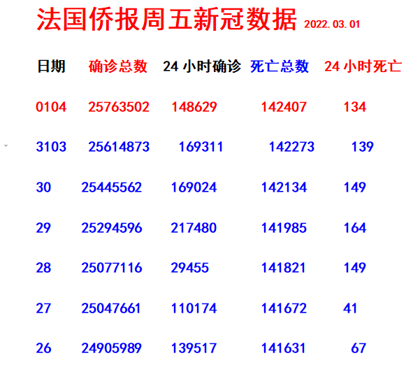 《法国侨报》讯:(记者 玉英)法国卫生部网站今天数据:24小时内有148629人新增阳性!阳性总数为25763502人。 24小时内有134人死亡,全法国今天为止总共有142407人死亡。
