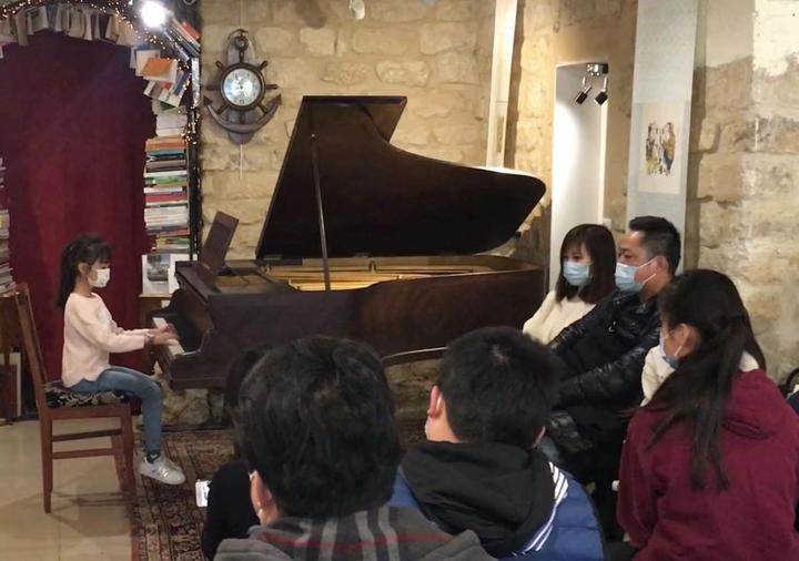 每个人都有一种内在的心里节奏,和追求美好的愿望,正如人的性格。 孩子们在学习钢琴过程中,也时时处处体现在弹奏里: 比如,有些学生是急板,有些学生爱拖拍,有些学生大起大落,有些学生随心所欲……正如音乐中变化的节奏。 现场中的大多数孩子,都是上周末刚刚参加巴黎第十届 Ranelagh 钢琴比赛并且都在各个级别中获得了奖的,还有孩子们的父母等。 现场最让人感动的是: 7岁的Tiffany落落大方,弹奏了一曲“茉莉花”。陪伴Tiffany弹琴的妈妈,居然也一样能弹奏茉莉花! 当母女两人同弹一首曲子后,现场的孩子和父母都以热烈的掌声送给母女两人! 现场,还有父子都上场弹奏…… 最让人惊喜的发现是:巴黎有一家温籍家庭,不仅15岁的哥哥Jonathan和13岁的妹妹Emma,用一曲舒伯特的“军队进行曲”四手联弹,在上周的法国高级钢琴同龄比赛中获得了第二名(第一名空缺),而且他们的小小妹妹,他们的爸爸妹妹一家5人,都是钢琴高手!今天他们两人的弹奏,赢得了现场经久不息的掌声!