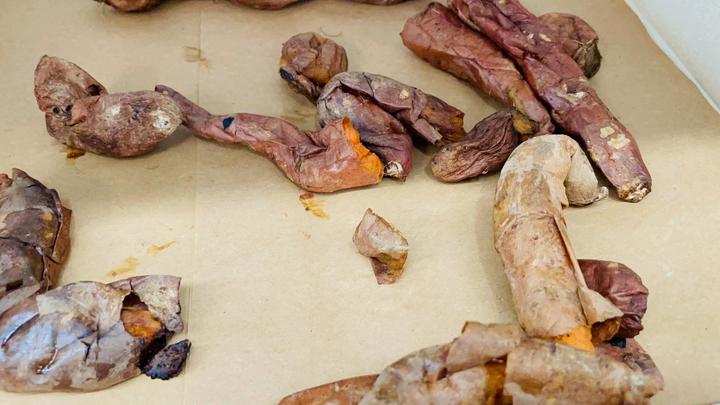 旁边还有烤熟的地瓜。