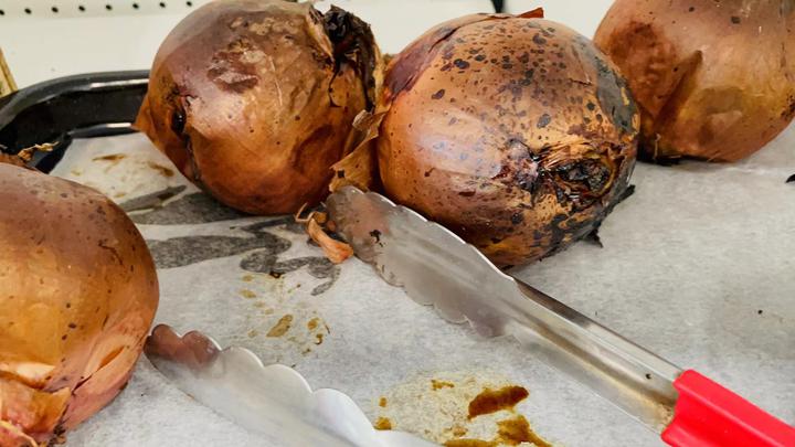 我挑选了几个。 哇塞,旁边还有洋葱!洋葱还可以烤熟了吃吗?我自问。原来,生活中的很多东西,都是可以尝试的!