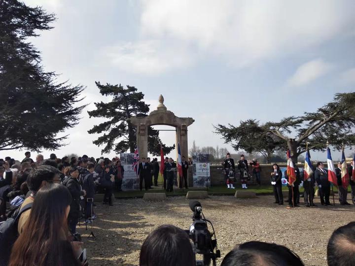 最大的一次是100周年纪念日,那一次很隆重,由法国外籍兵团退伍华人战友协会等法国华人侨团组织的,还有各个侨团都参加了那次的纪念活动,且不说个人自驾车去的了,单单大型旅游车就去了三四辆。另外还有法英仪仗队,有中法英官方人员,也都参加了纪念活动。