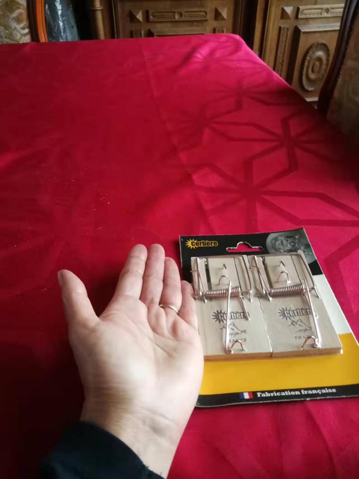 做了陷阱,它也没去,说明还知道哪里有危险。 群友调侃说:你家老鼠是聪明的酒鬼…… jade说:如果这么浓的酒精和洗衣粉不能把它消灭掉,那就没办法了…… 另外一位爱种菜的姐妹建议:用老鼠夹子抓! Jade马上请她的法国先生开车去买灭老鼠的家伙。 结果,满怀期待等法国先生回家,拿回就好用Jade哭笑不得,在群里说,先生买的是“老鼠玩家”迷你型老鼠夹!