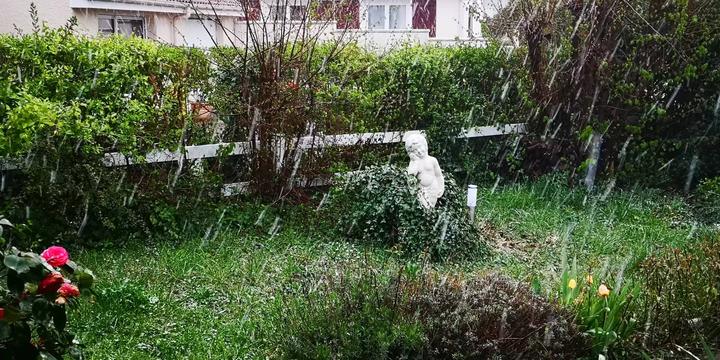 巴黎四月飞霜 昨天傍晚,正在厨房忙着,忽然听到玻璃窗被拍打的声音,抬头一看,入目竟是漫天飞舞的大片雪花! 事前没发现天气有过预告,突如其来的一场大雪使人倍感兴奋。狂风吹卷着据说是世界上没有一片是相同图案的雪花,这情景可活血了。 马上离开厨房,把正在书桌上充电的手机拔下来,跑到每一扇窗前疯按快门。还拍了带旁白的短片,马上发送到五湖四海,主题:「巴黎四月雪现场直播」!