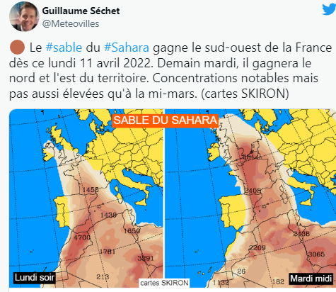 法国气象局说:沙尘暴会再袭法国。 这次的沙尘暴周一从撒哈拉出发。明天到达法国的北部和东部。 但是这次的沙尘暴会比3月中旬的要少得多。但是再小,室外的汽车过后还是需要清洗的。 根据法国的气象学家Guillaume Séchet的说法,"黄色天空 "将在本周一法国西南部的一天结束时回归。法国布列塔尼可以幸免于难。 据法国气象局称,周三当天,云层将略微向法国东部移动。 健康风险? 除了沙城暴造成的污垢之外,这些云层不会造成任何健康问题。"另一方面,当然也在监测相关的空气恶化情况,"法国气象局在3月中旬说,指出这些灰尘确实对空气质量有影响。 (来源:法媒、bfmtv、santepubliquefrance、sortiraparis) 推广