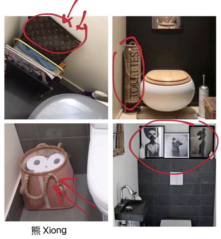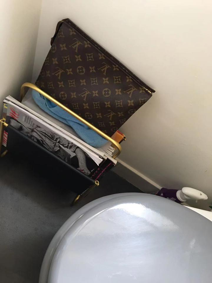 上图:LV(路易威登)的包,也在卫生间放置物品。