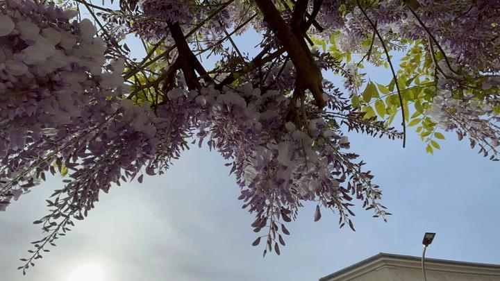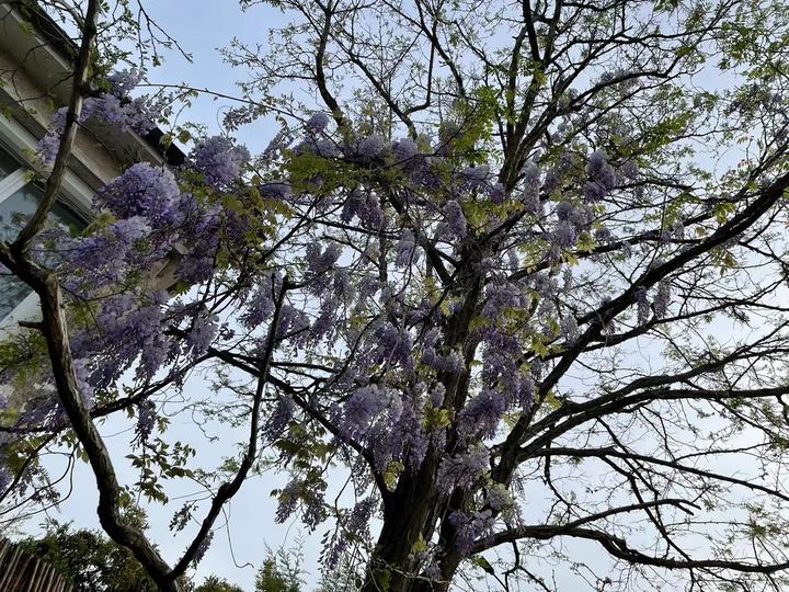 合作姐妹给我们分别包了一大口袋的上海小青菜……哇塞,真是物以稀为贵啊…… 内心里真的是感激姐妹的善良…… 就在送我们到门口时,热情的姐妹说:“我再陪你们去看看我自己认为是巴黎最大的牡丹花!” 跟着姐妹一路小跑,沿途看到落红遍地的樱花花瓣。 这是别墅区啊:周围每条街上都是紫藤飘飘……似乎这里没有紫藤,就不是热爱生活的法国人区域了……