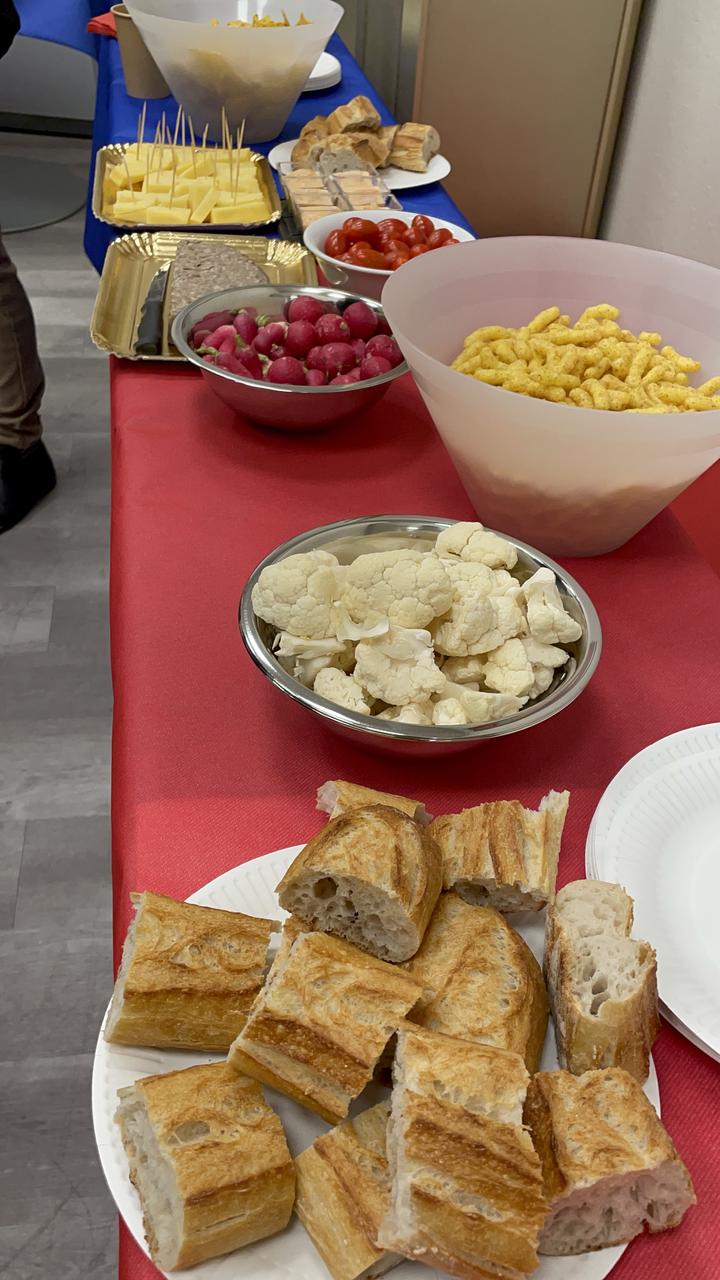patrick Bele说:自从政府规定要封城,记者只能在家工作的消息传来后,我就给每个记者配备了一台笔记本电脑,这样在家工作就更方便、更安全了……(该报后面是政府撑着,财大气粗啊!) 现场一位50多岁的女士问;“我是自由职业记者,靠每篇文章赚稿费为生。我20多年来一直是在家工作啊……你们怎么在家工作还有那么多不满呢……” 现场热火朝天,一个个抢着话筒谈自己的观点…… 9点到了。美女会长宣布散会,自助餐开始! 我看着美女会长和一个美女助理两人一盘一盘端到客厅里很多好吃的。我和大家一起跟过去,原来,棍子面包切碎了占了四大盘;还有就是小萝卜、西红柿等。
