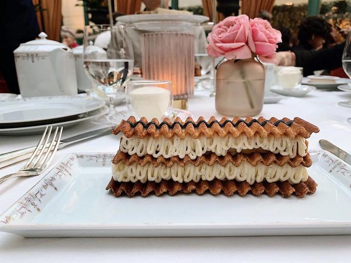 丽兹酒店的千层酥,无论从外形,口感,酥皮,都是数一数二的品质。 法式的茶厅是套餐形式,按人头收费,带香槟的和不带香槟的两种价格。