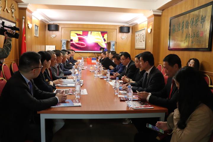 大家参观了法国华侨华人会中文学校、远程视频公证办公室等后,一起到会议室观看了法国华侨华人会的会刊和视频介绍,举办了座谈会。