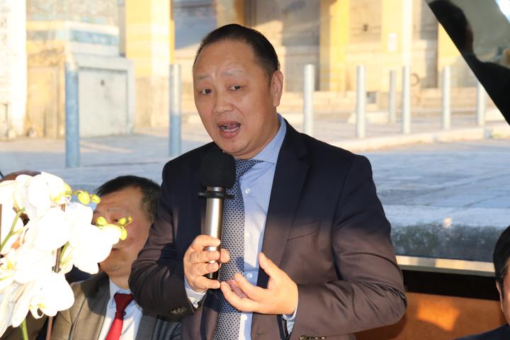 叶旭群热情介绍了当晚参加接待活动的宾主双方后,法国华侨华人会主席蔡君柱致欢迎辞。