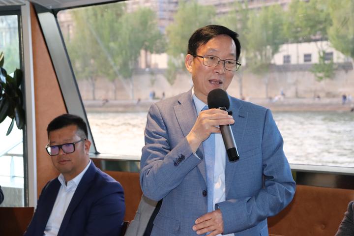 他说:“非常高兴在巴黎塞纳河畔迎来了欧洲其他国家的华人社团会长们! 法国是中国主要的海外侨居国之一,法国的浙江籍乡亲又占了欧洲国家华侨华人中的大多数。目前,我们旅法的浙江籍侨团非常和谐、团结!今晚的活动,就是由我们法国华侨华人会、法国青田同乡会、法国法华工商联合会、欧洲青田同乡总会、法国中法友谊互助会、法国浙江华人联谊会、法国文成联谊会、法国华人服装业总商会、法国外籍兵团退伍华人协会、法国浙江同乡会、法国华侨华人妇女联合会、法国浙江商会共同联手主办的。 多年来,我们旅法侨界在中国驻法使馆的正确领导下,广泛团结旅法华侨华人及侨社,一直关心、支持祖籍国和家乡浙江的建设,努力构建和谐侨社,重视对华人新生代的培养,维护旅法侨胞合法权益,举办各类大型经贸和文化交流活动,促进了中法友好,弘扬了中华文化,树立了旅法侨胞的良好形象。 由于新冠肆虐使得欧洲经济低迷,我觉得旅法华侨华人“反哺”故土将会成为一种热潮。希望在新冠结束后,旅欧的侨团共同携手促进祖国、家乡经济社会的发展,开启海外浙商回归投资创业的新篇章!” 接着,西班牙、意大利、德国和比利时的欧洲华人社团会长代表们纷纷发言……