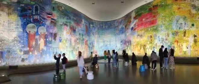 艺术家的虔诚使人感动。 她们作为观众时的虔诚也叫人感动。 第二位是巴黎的熊有华,也是在早年采访华人中文学校时认识。她是中文学校教师,住邻城,所以时有往来。退休不久,不是旅游就是看展览,巴黎的大展现场,常见有她的身影,最佩服她置新冠于度外的勇气。 熊有华本人也是获奖书画家,家学渊源,是巴黎著名艺术家熊秉明先生的姪女,祖上不是数学家就是科学家。看她的书法,一手秀丽的蝇头小楷,一望而知就是沉得住气做学问的家族遗风。 昨天见有华在朋友圈上传了她参观展览时的随手拍,旁白是:「今天去了现代艺术馆,实在是需要一位讲解员来启示一下!」