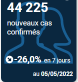 阳性率为22.3%。 法国目前有21880(-439)人住院,1447(-18)人在重症监护室。