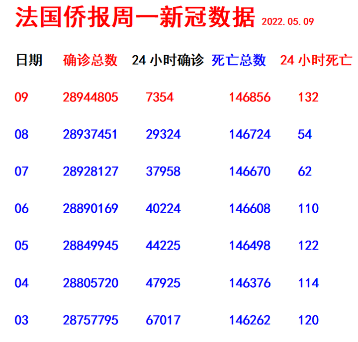 《法国侨报》讯:(记者 玉英)法国24小时内新增阳性7354人,阳性总数达到28944805 人; 24小时内有132人死亡,法国目前为止共有146856人死亡。