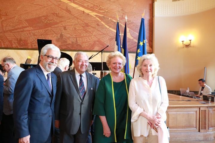 一直支持法国国际妙音同善会慈善事业的旅法华人捐赠者、巴黎第15区的区长Philippe Goujon、联合国教科文组织文化助理总干事埃尔乃斯托·奥托内·拉米雷斯、法国国际妙音同善会名誉主席波旁王朝碧翠丝公主以及马耳他骑士军团法国官员、联合国教科文组织官员,法国政府官员,欧洲王室成员、艺术家以及周勤龄家人、好友等200多人出席了此次授勋典礼。
