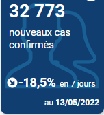 阳性率为16.8%。 法国目前有19,272(-490)人住院,1,233(-59)名病人在重症监护室。