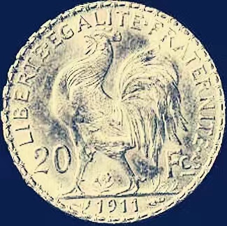 1665年,法国军队与西班牙人打仗,夺回了一座城市,为了纪念,法国人铸造铜币时,在上面印上了一只雄鷄在追一只逃脱的狮子。因为根据传说,雄鸡的啼叫声能使狮子也逃跑!铜币上的雄鸡,当然代表法国人了。这是最早以雄鸡来象征法国的证物。