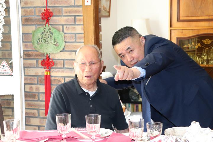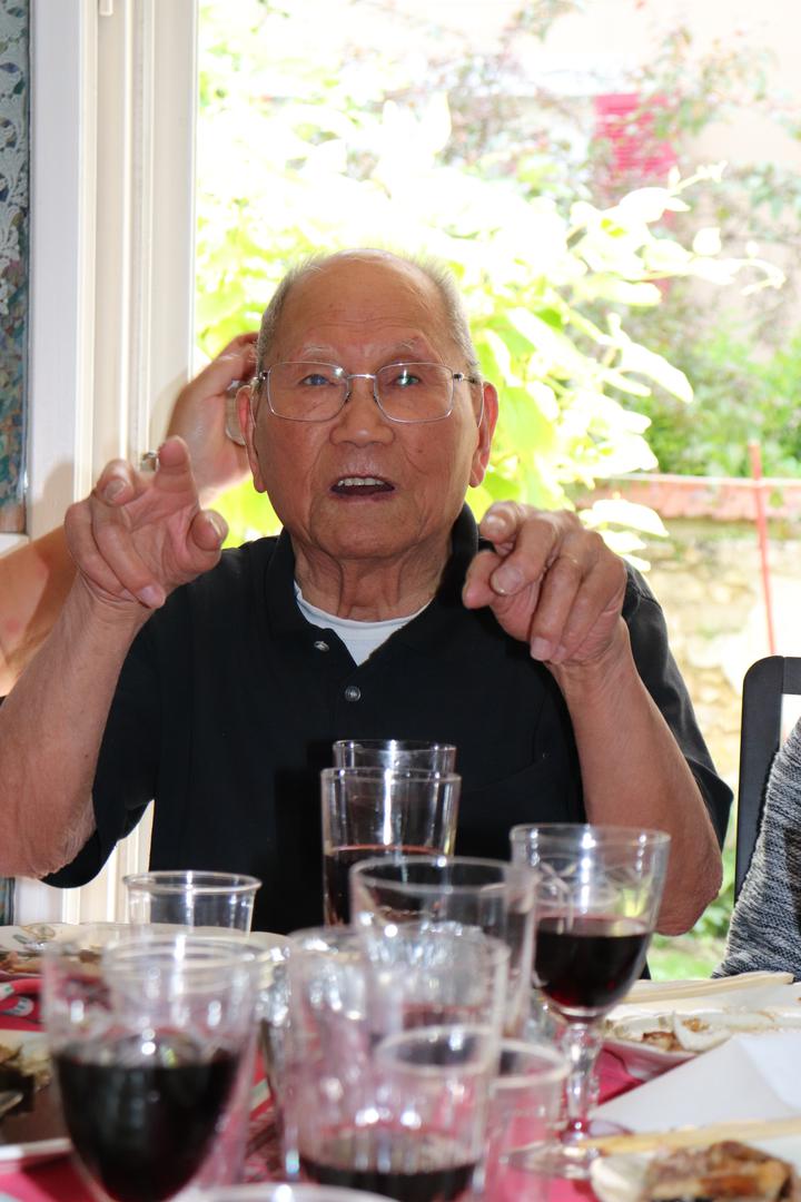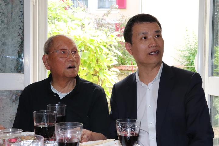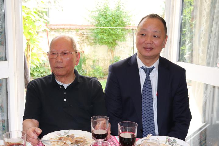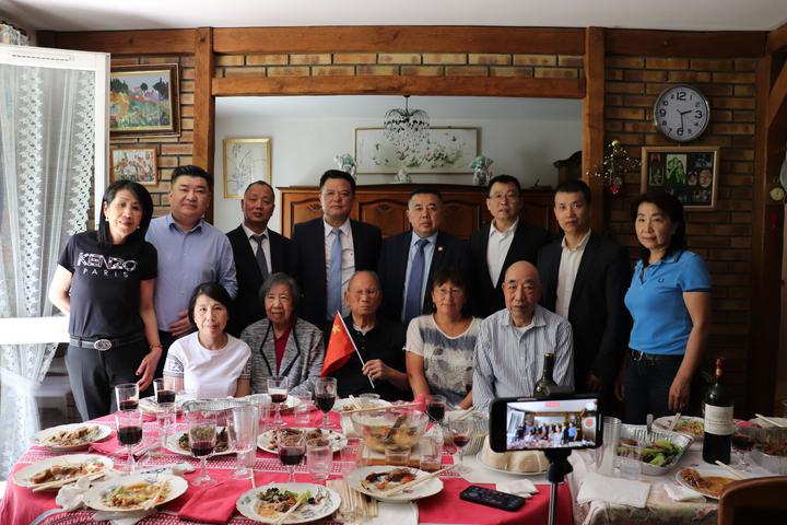 翁老是法国华侨华人会第22、23届主席任俐敏太太家族的长者。为此,任俐敏的岳母、岳母弟弟、太太、小姨子等家族里的人,都一起前去看望他们的前辈,也是我们旅法华侨华人共同的前辈。 故事太多、太长……今晚只能挑让我感触最深的部分先分享…… 第三:翁老酒量好酒风好吃饭好! 今天,旅法侨领一行带了很多温州菜和红酒去。