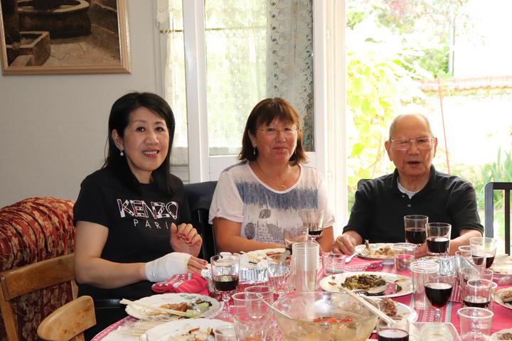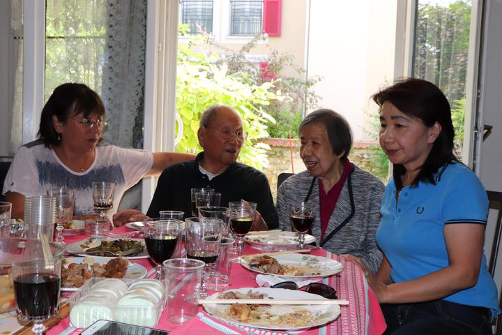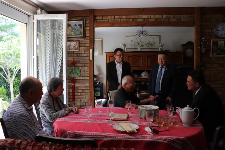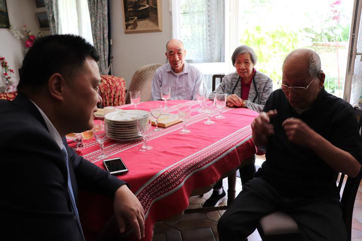翁老的法国老伴多年前先他而去,子孙辈都在法国不同城市生活工作,有一个孩子全家在英国。 他的生活起居都会自理。女儿会定时每周会来看望并照顾他…… 翁老说:新中国成立后,他回国参加国庆活动,至今保存着和中央领导的合照等等…… 看到翁老柜子里有很多中文书。问他:你读中文? 这次,通过任俐敏先生翻译,才知道翁老出国时丁字不识,他利用业余时间请一个留学生教了5年,学会的!