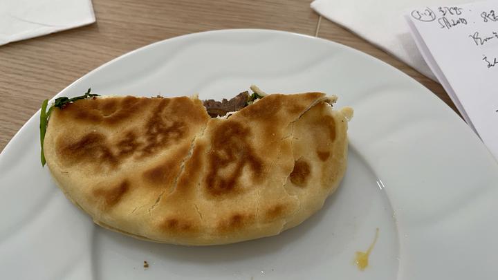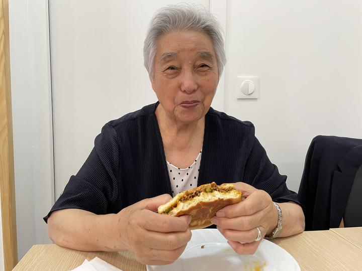 钢琴老师也要了一个肉夹馍。他可是巴黎的经典美食家:每天在外面,他精心挑选的饭店,吃他认为最地道的菜。 发现钢琴老师不说话了,一口咬下去,一边嘴里嚼,一边一个劲地转着看他手里的法式肉夹馍。 我看着他咬,心里数着“一口、两口、三口……” 等他空下来,我问他:味道如何? 来自北京的钢琴老师看了我一眼,抽空回答我说:“对我这个北方人来说,再好吃的白米饭都比不上这个法式肉夹馍了!真是好吃啊!”