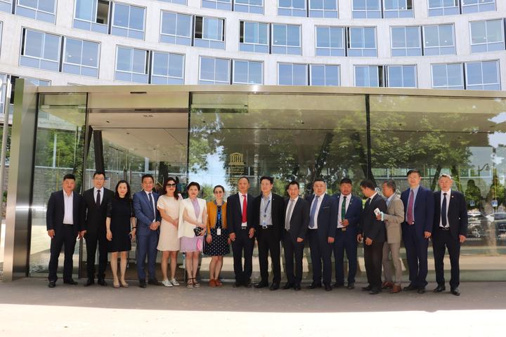 (油管:https://youtu.be/OHImKywfVPg) 2022年5月18日下午3点,18位旅法侨领参观了坐落于巴黎7 Pl. de Fontenoy, 75007 Paris的联合国教科文组织总部。陪同的“高级博物馆导游”竟然是联合国教科文组织世界遗产中心亚太部主任景峰。