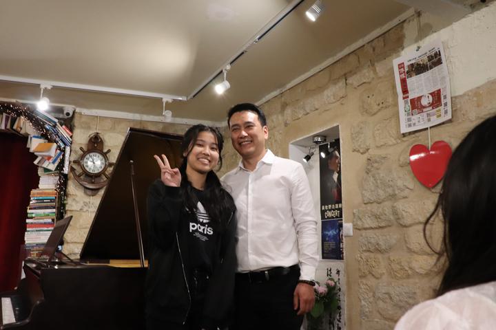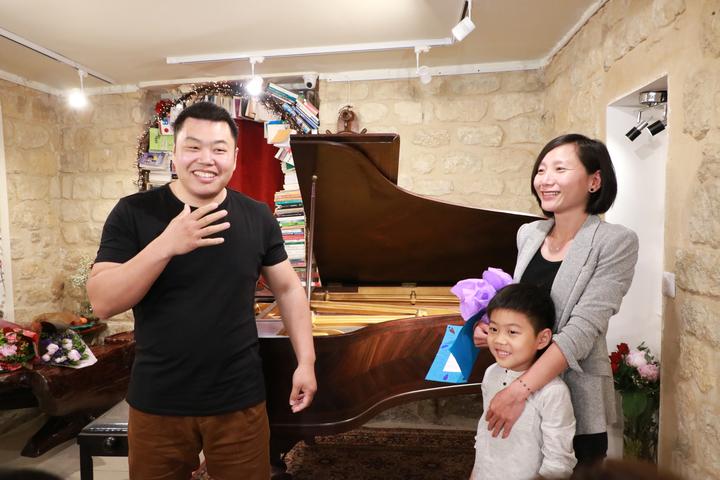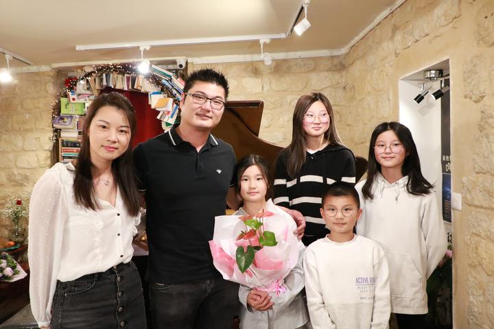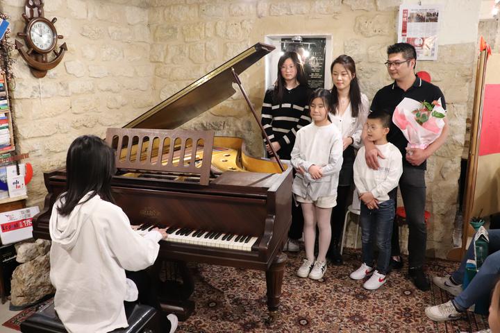 今天还有两个特别感人的镜头是: 一是路易不小心摔倒骨折。本来以为肯定无法来了,但是路易坚持右手缠着绷带,简直用左手和父亲一起演奏了“爱的罗曼史”,送给他的妈妈; 二是Cecilia今天下午3点钟有一个重要的演出。那边演出刚结束,她马上请父亲送她来到现场,激情演奏了肖邦的圆舞曲……现场掌声如雷…… 发起和策划这次活动的熊老师说:“爱,从未停止在声音中追寻永恒,而体现永恒的是地球上生生不息的生命现象。我们会长大,甚至变老,但对于母亲而言,我们永远是一个小孩。” 今天,《法国侨报》和《法国华人头条》的记者,用直播、录播、照相机,现场一一记录下了巴黎钢琴王子、公主们在母亲节里,对妈妈最真实、美好、亲情的画面……爱是永不止息…… 祝愿所有的母亲都能在母亲节这天,享受到来自子女的心意和陪伴! 更多图片: (悦薇家)