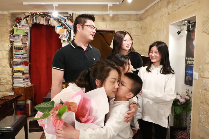 接着,雨果弹奏了简易版的“听我说谢谢你!” 姐姐阿美丽自弹自唱了“听我说谢谢你!”一曲结束,一家四口拥抱在一起…… 中国和法国的母亲节时间不同,法国今年是5月29日,世界许多国家在一年中不同的时节,庆祝属于他们的母亲节。