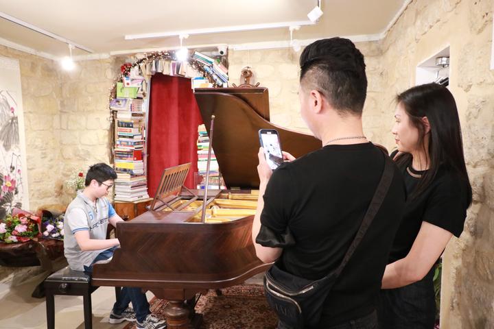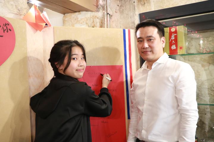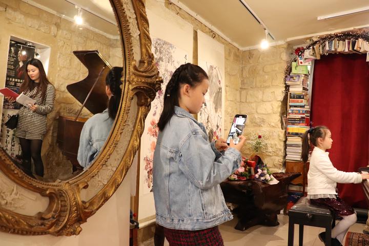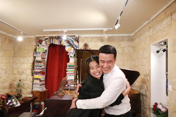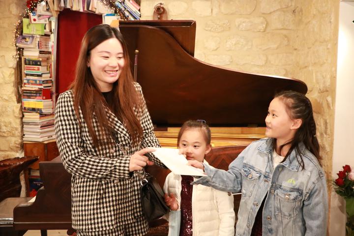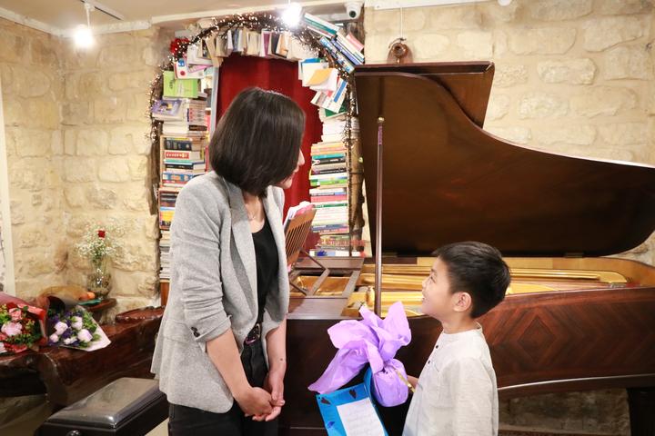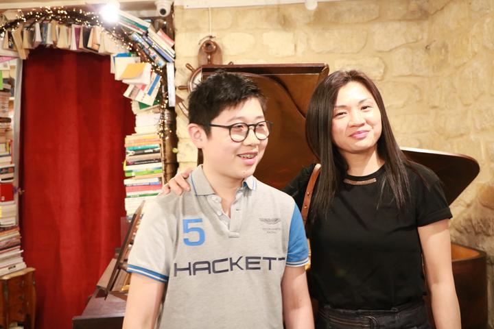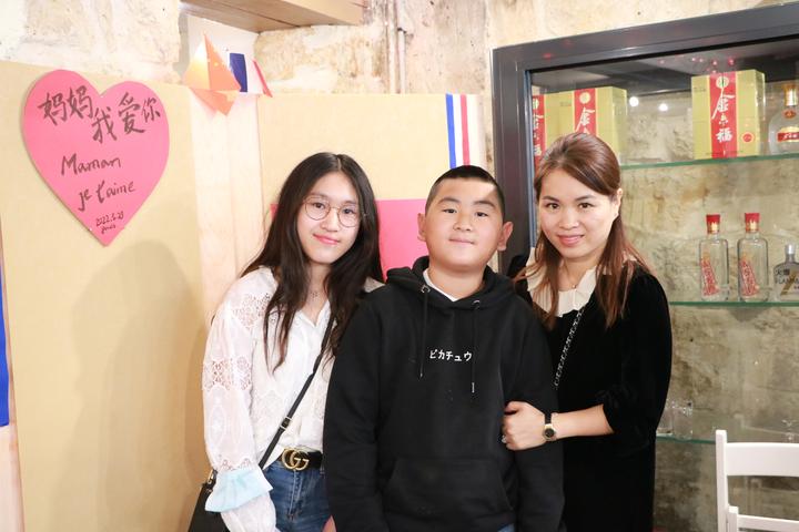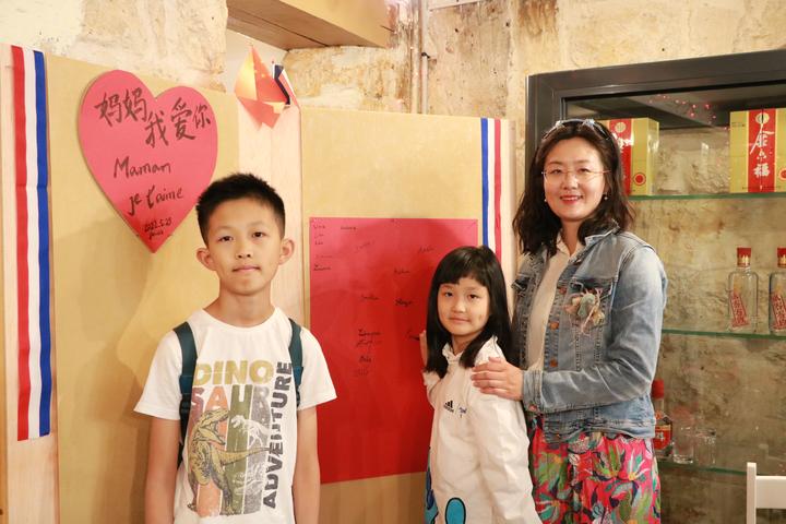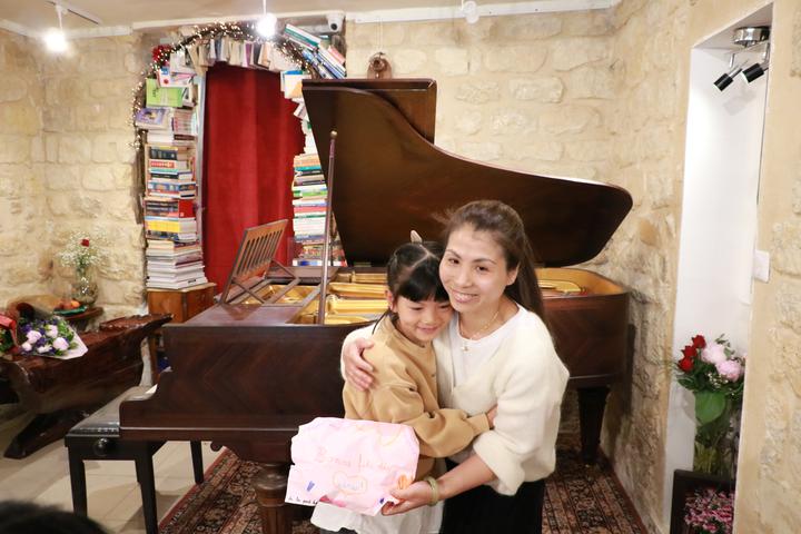 成长在完全没有中国元素的12岁法国男孩 Louan ,对中国文化特别喜欢,特别在学校选修了中文课。今天和他的母亲 Sabrina 非常开心地参加了活动,并且自己朗诵了一首写给妈妈的诗歌,然后为他的母亲弹奏了一首“Pour Elise”的主题曲。他的妈妈一直微笑地看着儿子演奏,并现场用手机拍下了儿子演奏的过程。一曲结束,妈妈和儿子热烈相拥……