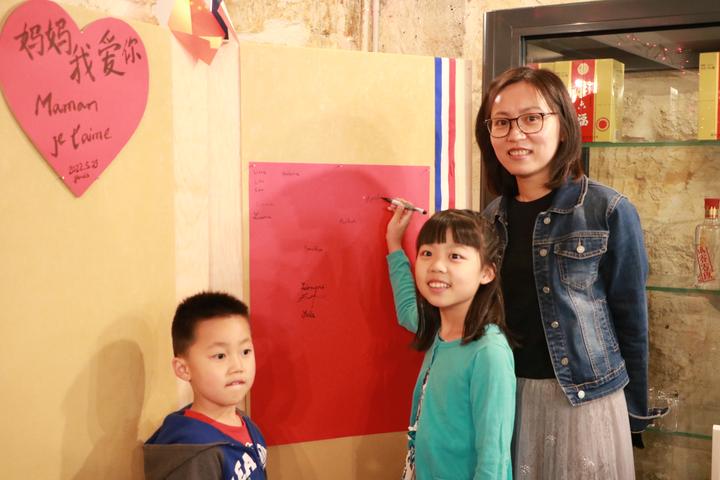 (巴黎海芬日记第577篇) 2022年5月29日星期天 巴黎晴朗 今天是法国母亲节。 母亲节里,给妈妈最好的礼物是什么? 当5岁的小雨果在巴黎中国非遗馆举办的母亲节活动上,首先在“妈妈,我爱你(Maman je t'aime)”的中法主墙板上签下自己的名字,然后拿出自己写的诗歌,当众读给妈妈听时,他妈妈满含热泪,拥抱了儿子……