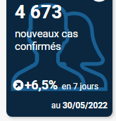 阳性率为13.1%。 法国目前有15488(-158)人住院,992(-22)人接受重症监护。