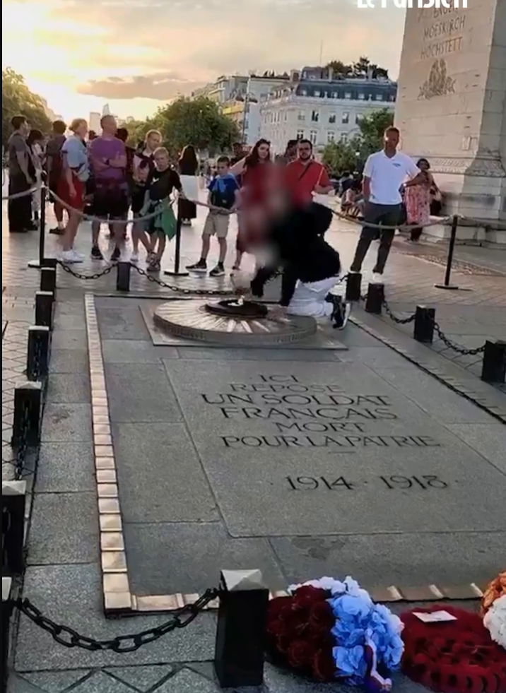 《法国侨报》讯:8月5日,在巴黎凯旋门下的无名战士墓前,一名男子竟然用纪念火焰点燃香烟的行为被拍下并上传网络,瞬间引发大量网友愤怒转发。此举被法国官方严厉谴责为“卑劣”、“可耻”和“不可容忍”。 据现场流出的视频显示,该男子翻越围栏后跪在纪念火焰前点烟,随后在众多围观群众注视下迅速离开。整段行为虽然只持续了数秒,却可能让他付出沉重代价。