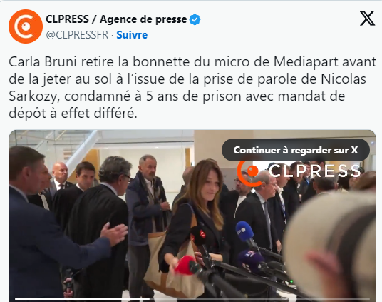 《法国侨报》讯:9 月 25 日,巴黎轻罪法庭传来震撼判决:法国前总统 尼古拉·萨科齐 因“利比亚竞选资金案”被判 五年实刑。这是法兰西历史上首次有前总统真正面临牢狱生活。判决一出,舆论哗然,而庭外的一幕更是吸引了所有镜头。 就在宣判结束、萨科齐发表简短声明后,他与妻子 卡拉·布鲁尼 准备离开。面对蜂拥而至的媒体,布鲁尼忽然靠近一支带有《Mediapart》标志的红色话筒。只见她露出一个意味深长的微笑,伸手扯下了话筒上的防风罩(俗称“话筒套”),随手丢在地上,然后转身离开。 这一细节立刻引发热议。要知道,《Mediapart》正是最早揭露“利比亚资金案”的媒体——早在 2012 年,它就公开过一份文件,指控卡扎菲政权向萨科齐竞选输送巨额资金。此后,萨科齐曾控告该媒体伪造证据,但诉讼以失败告终。如今,布鲁尼的这一举动,被不少人解读为带着情绪的“象征性报复”。 更耐人寻味的是,布鲁尼本人也已卷入此案的一个分支。今年 7 月,她因涉嫌 教唆伪证 及 参与有组织欺诈司法,已被正式起诉。 事件曝光后,《Mediapart》并未激烈回应,而是幽默地在报道中写下:“Abonnette-vous!(订阅吧!)” 随后,该媒体的记者还打趣称:“那块话筒套安然无恙,请大家放心。” 从法庭宣判到庭外举动,这对昔日“总统夫妇”的一举一动再次成为焦点。法国司法的铁面与布鲁尼的冲动小动作,交织成当天最具话题性的画面。(来源:巴黎人报等法媒综合) 推广 |