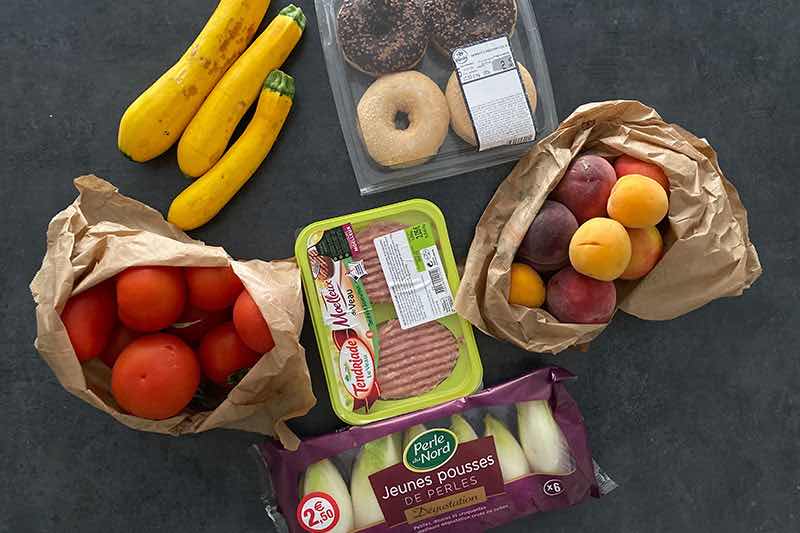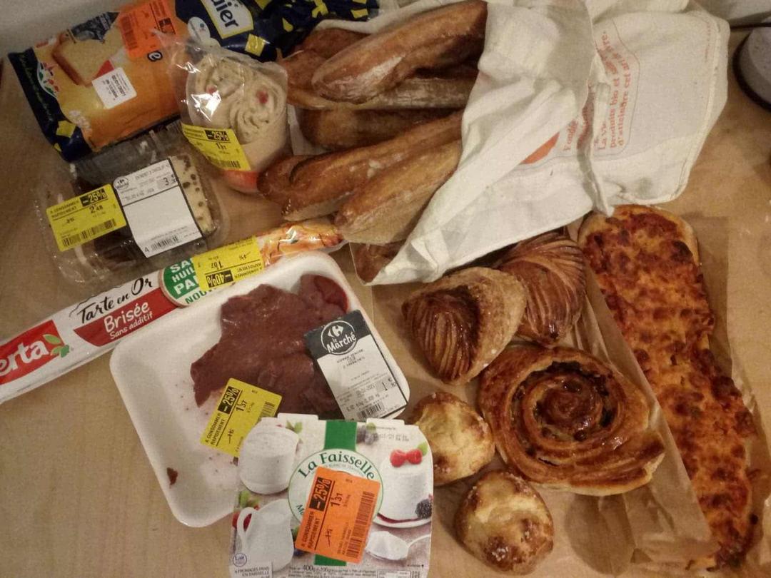 先说超市,我一个同事有一次抢到的是 Bercy 附近一家 Monoprix的盲盒。拎回家拆封:奶酪一块、蔬菜一大把、酸奶几杯,居然还翻出一袋三文鱼。虽然新鲜度肯定不是最好的,但是也完全对得起€3.99的价格了。