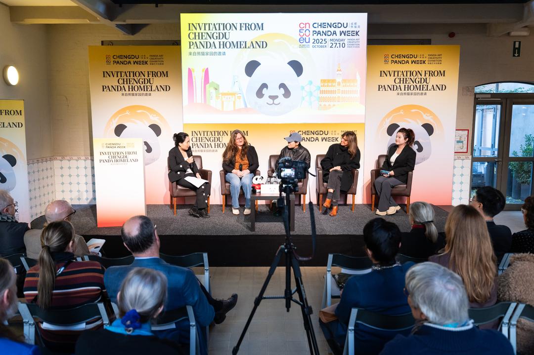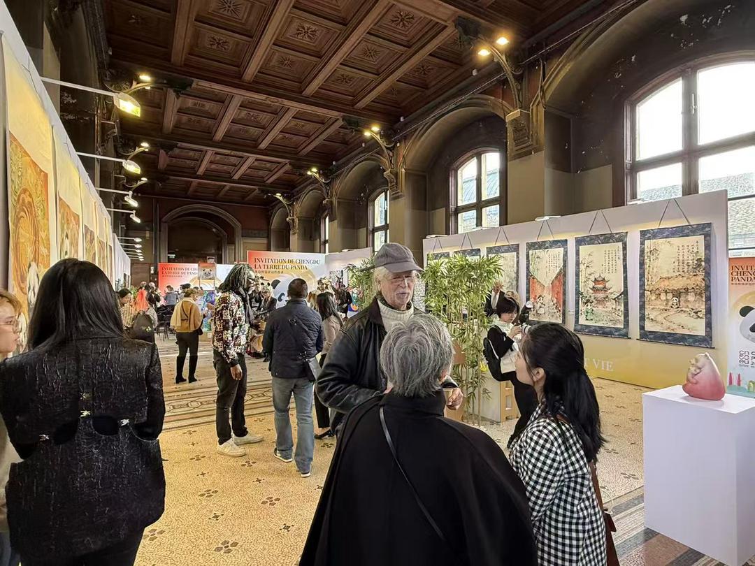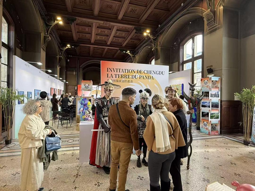 | 10月23日至28日,恰逢中国与欧盟建交50周年,“来自熊猫家园的邀请——成都熊猫周”系列活动登陆法国巴黎、比利时布鲁塞尔。这场包含大熊猫IP推介、“惊喜成都,魅力无限”熊猫车队巡游、中欧文旅生态对话等12 场活动的盛会,不仅吸引了中欧政治、经济、艺术领域超200 位嘉宾参与,更让欧洲民众近距离感受成都魅力,为中欧文旅合作与生态交流搭建起紧密桥梁。 双城对话:在“文化+生态”中读懂成都 巴黎:文创与文旅的碰撞 当地时间 10月24日,巴黎国立工艺学院内热闹非凡 ——“幸福成都熊猫文化艺术展览”与“熊猫家园:梦想与生活” 主题艺术展同步开启。现场展出的200余件作品里,熊猫造型的刺绣、竹编文创,以及展现成都城市风貌的摄影作品,吸引了很多巴黎民众驻足。“这是我第一次通过文创了解成都,熊猫书签和盖碗茶杯太精致了,下次一定要带孙女去成都熊猫基地!”巴黎市民玛丽的话,说出了不少参观者的心声。同期举办的“携手熊猫家园浪漫之旅”成都-巴黎文旅对话,与会嘉宾围绕“文旅消费升级”“成都数字文创”展开讨论。