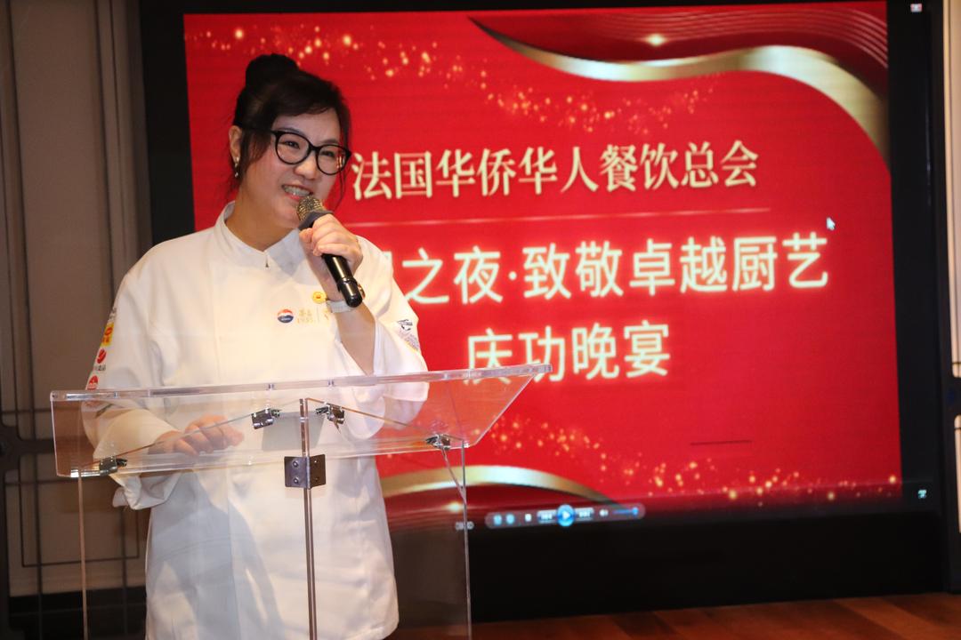 李冰斯表示:“今晚,我们欢聚一堂,共同庆祝协会两位成员在国际赛事中取得的杰出成就——36岁、巴黎土生土长的华二代名厨委员薛黎达(Lida Xue)荣获2025年第34届中餐厨艺世界锦标赛金奖,余克昌(Kechang Yu)荣获法国世界鳞甲烹饪锦标赛最佳厨艺呈现奖。这不仅是他们个人努力的成果,更是旅法华人餐饮界的集体荣光。法国华侨华人餐饮总会自成立以来,始终致力于推动华人餐饮在法国及欧洲的传播与发展。总会积极组织和参与各类中餐推广活动、厨艺比赛与行业交流,并与法国餐饮协会及烹饪学院保持密切合作,不断促进中餐与法餐的交流与融合,在技艺与文化上相互启发、共同进步。多年来,总会秉持“传承中华美食文化,弘扬中餐工匠精神”的宗旨,带领会员企业持续提升技艺与品质,展现出新时代华人餐饮业的专业风貌与文化底蕴。” 法国华侨华人会主席蔡君柱当晚亦出席并致辞。他表示:“今晚,我们欢聚一堂,共同庆祝法国华侨华人餐饮总会青年委员薛黎达在第34届中餐厨艺世界锦标赛中荣获金奖的辉煌成就。这不仅是 薛黎达个人努力的结晶,更是旅法华人餐饮业的骄傲,也是整个旅法侨界的荣耀。”